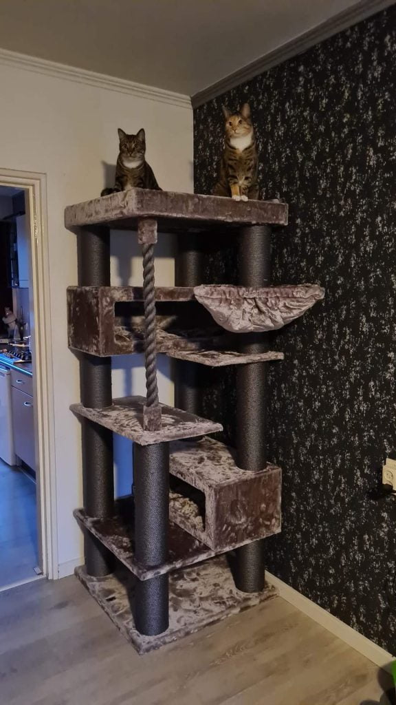 Natascha wollte einen Kratzbaum mit genug Platz für ihre beiden Katzen. Sie wählte unser Kratzmöbel Turnpike 190, da es robust, hoch und die Teile leicht austauschbar sind. Sie und die Katzen sind immer noch sehr zufrieden damit. Und jeder, der hereinkommt, sagt: „Wow, was für ein schöner Kratzbaum!“