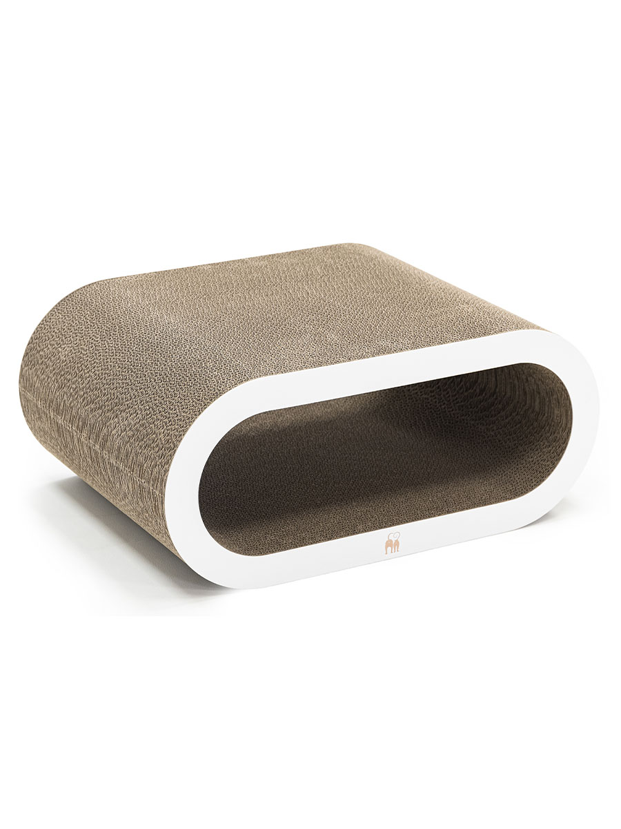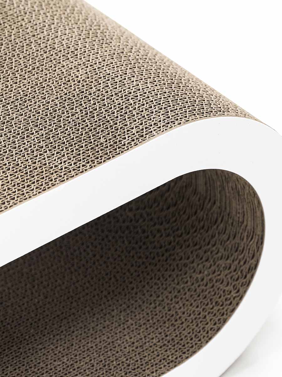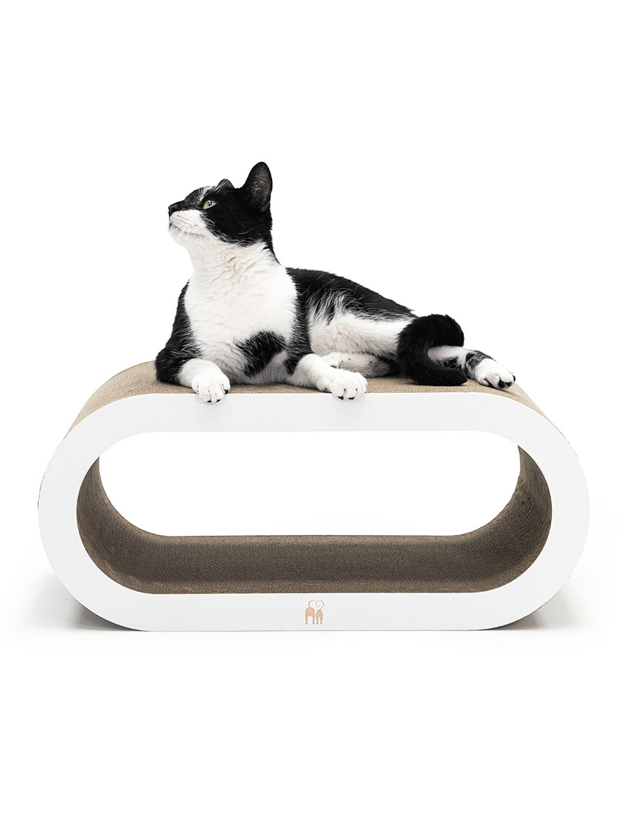 Unser Daisy 59 ist ein Kratzmöbel aus stabilem recycelten Karton mit einer coolen ovalen Form und einer großen Öffnung in der Mitte. Das ist perfekt für Katzen, die Abwechslung lieben! Sie können daran kratzen, hindurchschlüpfen und oben drauf chillen: alles ist möglich! Die Struktur des Kartons dieses Kratzmöbels ist leicht angeraut und damit genau so, wie Katzen es mögen. Denn so können sie ihre Krallen gut wetzen und das Material fühlt sich angenehm an – auch in Bezug auf die Temperatur. Denn dafür ist Karton bekannt: er hilft Katzen, ihre Körpertemperatur zu regulieren. Ein Highlight aus unserer Kollektion!