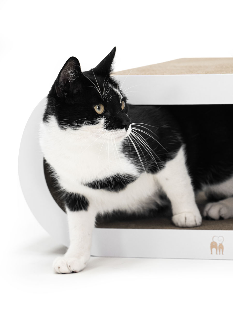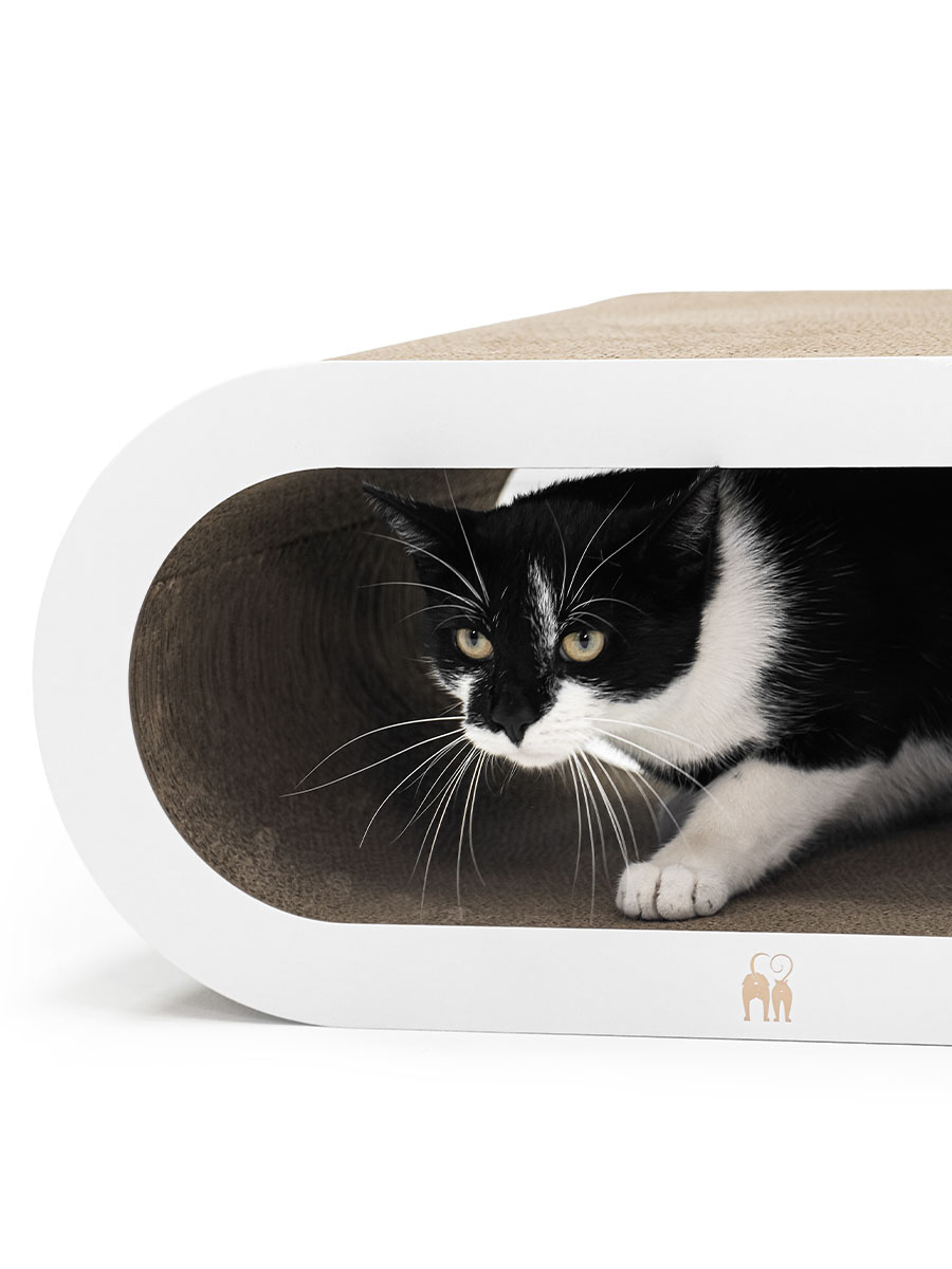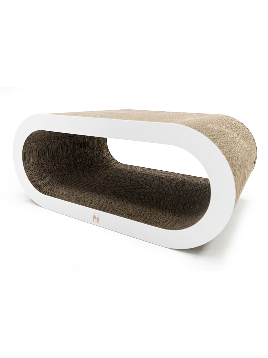Unser Daisy 59 ist ein Kratzmöbel aus stabilem recycelten Karton mit einer coolen ovalen Form und einer großen Öffnung in der Mitte. Das ist perfekt für Katzen, die Abwechslung lieben! Sie können daran kratzen, hindurchschlüpfen und oben drauf chillen: alles ist möglich! Die Struktur des Kartons dieses Kratzmöbels ist leicht angeraut und damit genau so, wie Katzen es mögen. Denn so können sie ihre Krallen gut wetzen und das Material fühlt sich angenehm an – auch in Bezug auf die Temperatur. Denn dafür ist Karton bekannt: er hilft Katzen, ihre Körpertemperatur zu regulieren. Ein Highlight aus unserer Kollektion!