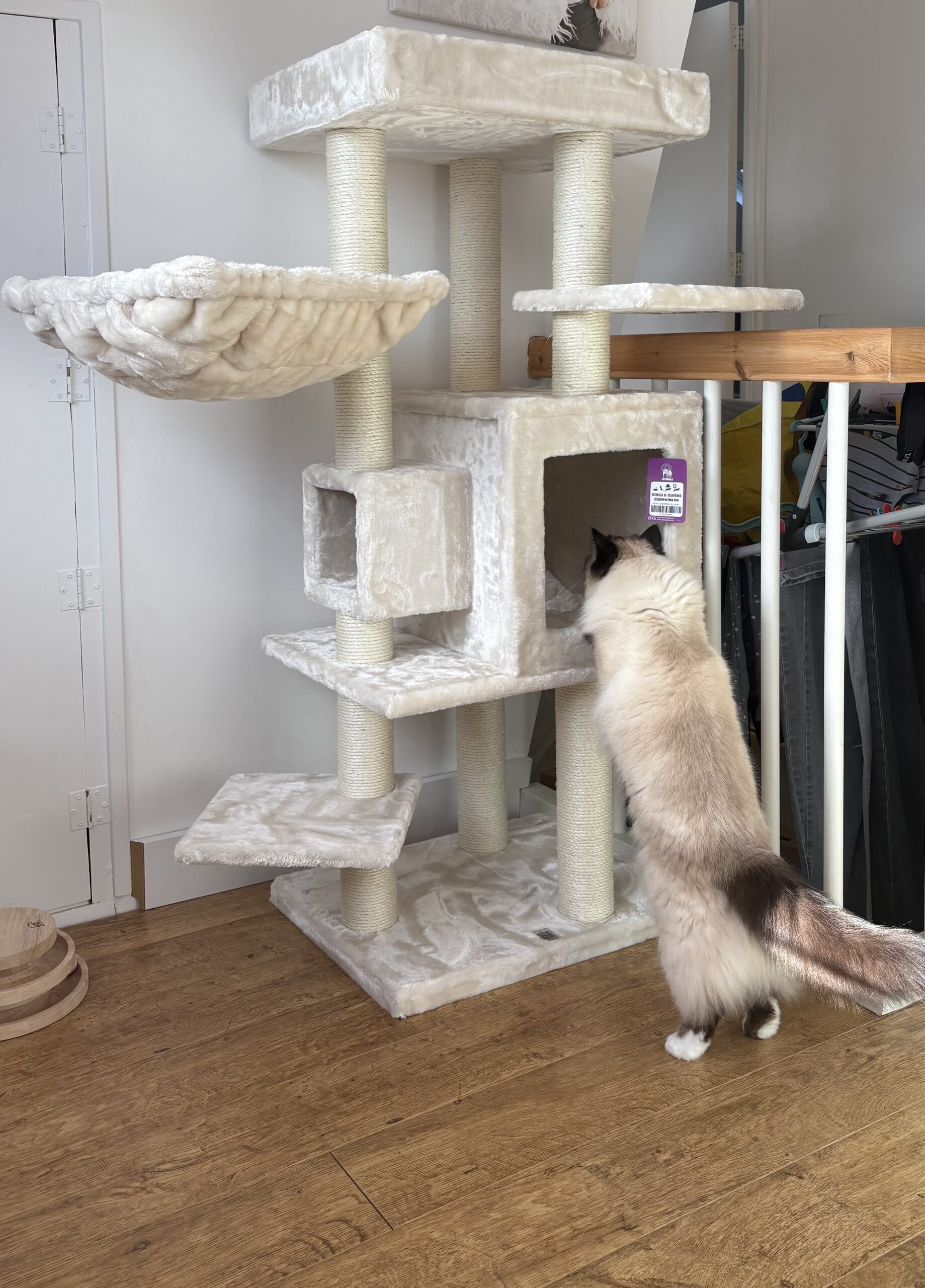 Arbre à chat parfait ! Nos deux Maine Coons l’adorent. Cela fait maintenant un an que nous l’avons, et ils y passent tout leur temps. En plus, la qualité est excellente. Je recommande vivement !