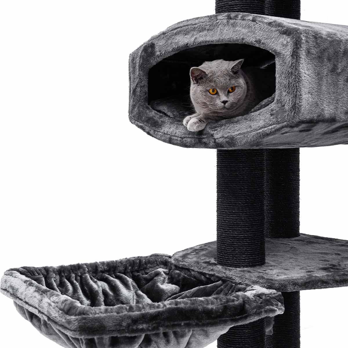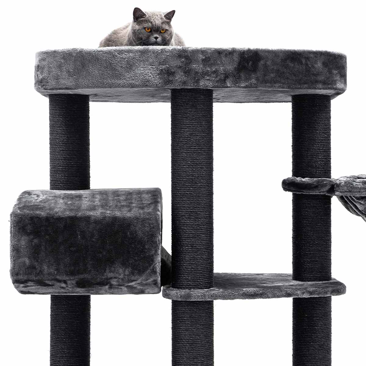 Der Kratzbaum Drive 195 ist ein echter Hingucker: Er ist ganze 195 cm hoch, geräumig und perfekt für Katzen, die gerne auf Entdeckungsreise gehen, kratzen und faulenzen. Deine Katze kann ihre ganze Energie und ihren Stress loswerden, indem sie an den Kratzstämmen kratzt oder von einer Plattform zur anderen springt.