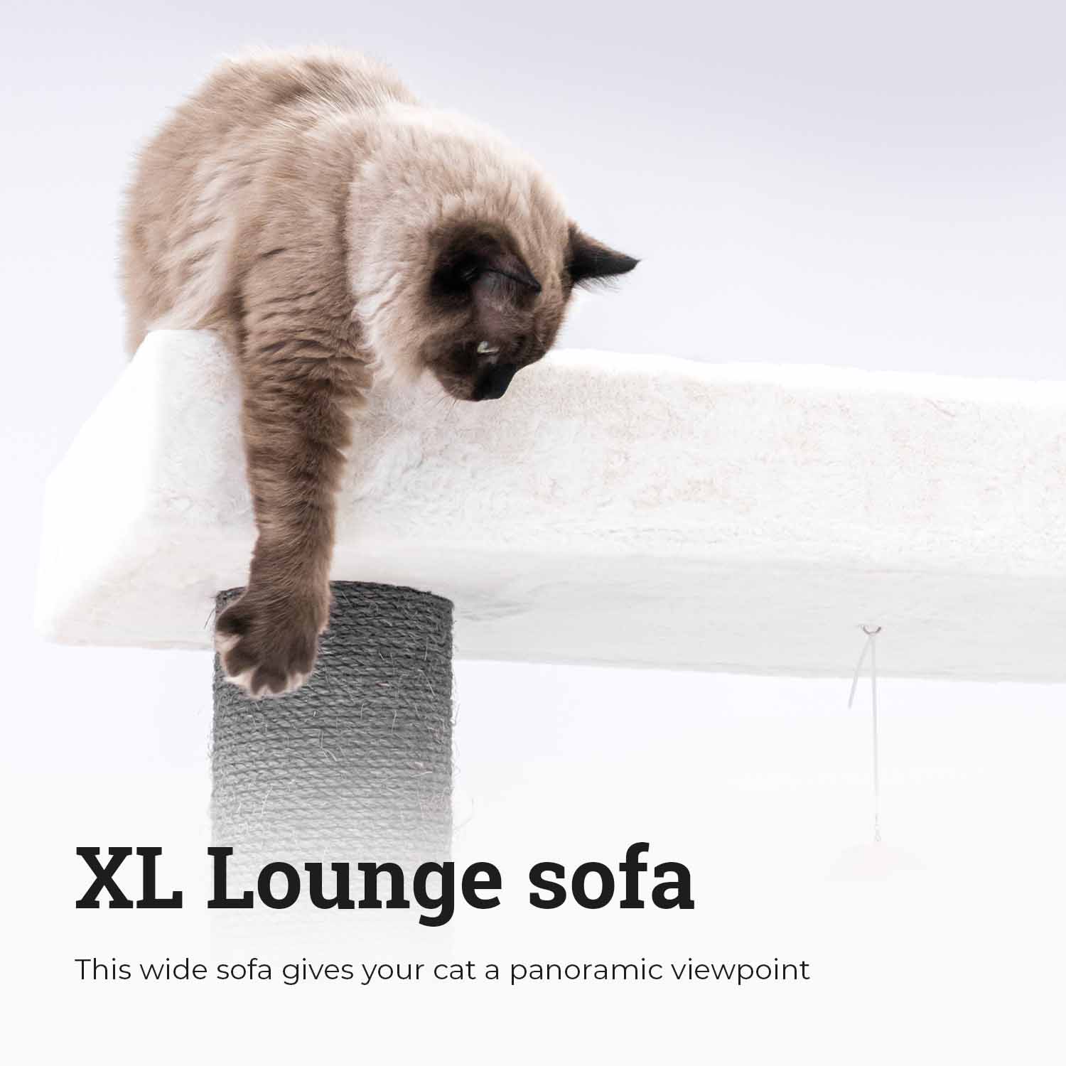 Abenteuerlustige Katzen können sich auf dem Katzenmöbel Lookout 198 austoben. Denn bei diesen Möbeln ist alles möglich! Kratzen an extra dicken Kratzstämmen von 15 Zentimetern, wandern über die Holzbrücke und schlafen in der Mega-Lounge oder in einer der beiden Luxus-Hängematten. Und der XL-Loungekorb auf der Oberseite ist speziell für Rebellen, die gerne hoch oben sitzen oder liegen. Herrlich zum Entspannen, aber natürlich auch, um das Geschehen im sicheren Abstand von oben zu beobachten.