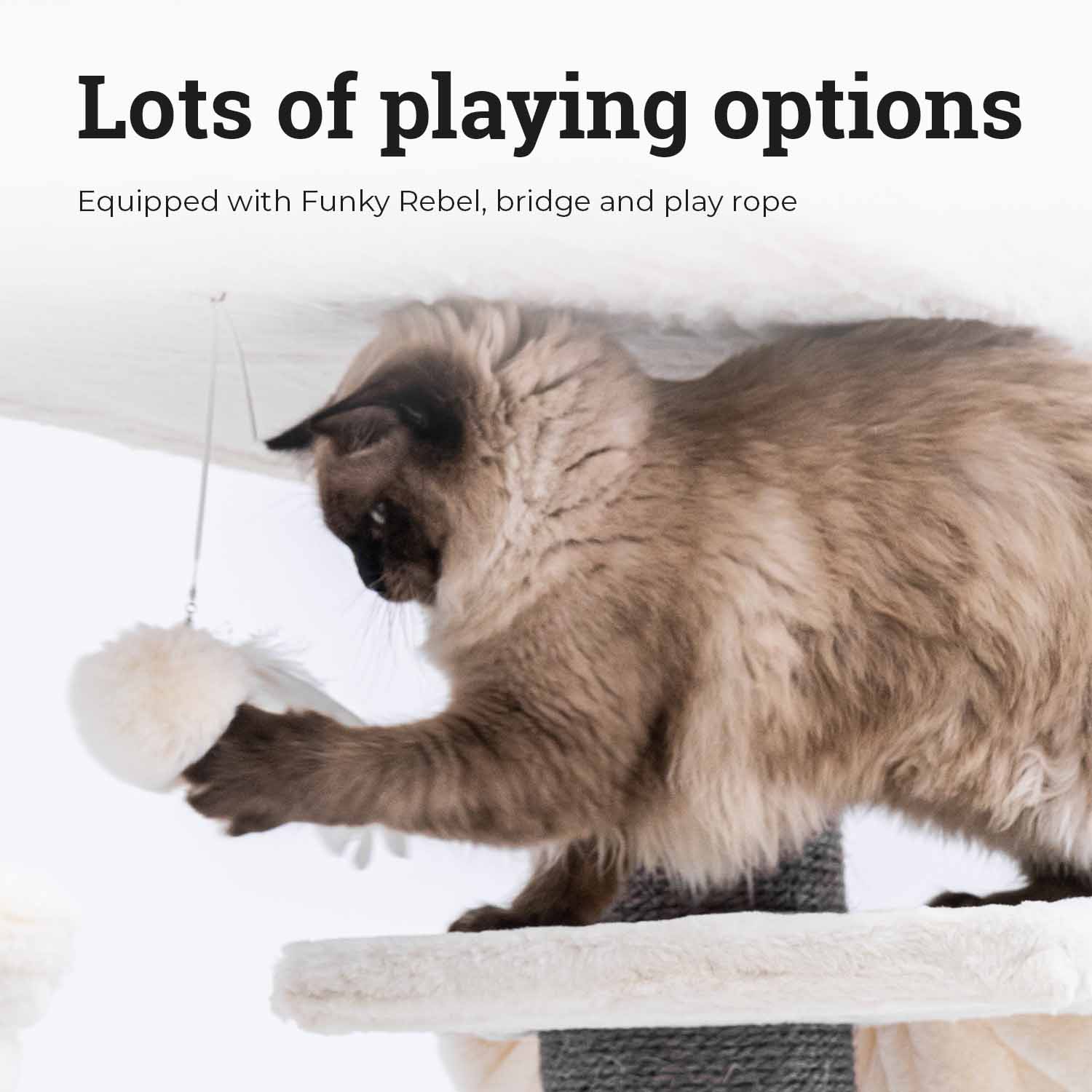 Magnifique arbre à chat ! C’est le second arbre à chats Pet Rebels que je commande et je suis plus que ravie. Le montage est très bien expliqué et assez rapide, la qualité des couchages est incroyable, se lave très bien en machine. Il est grand mais très stable et résiste au poids de mes chats sans aucun problème. Je suis très heureuse de cet achat !