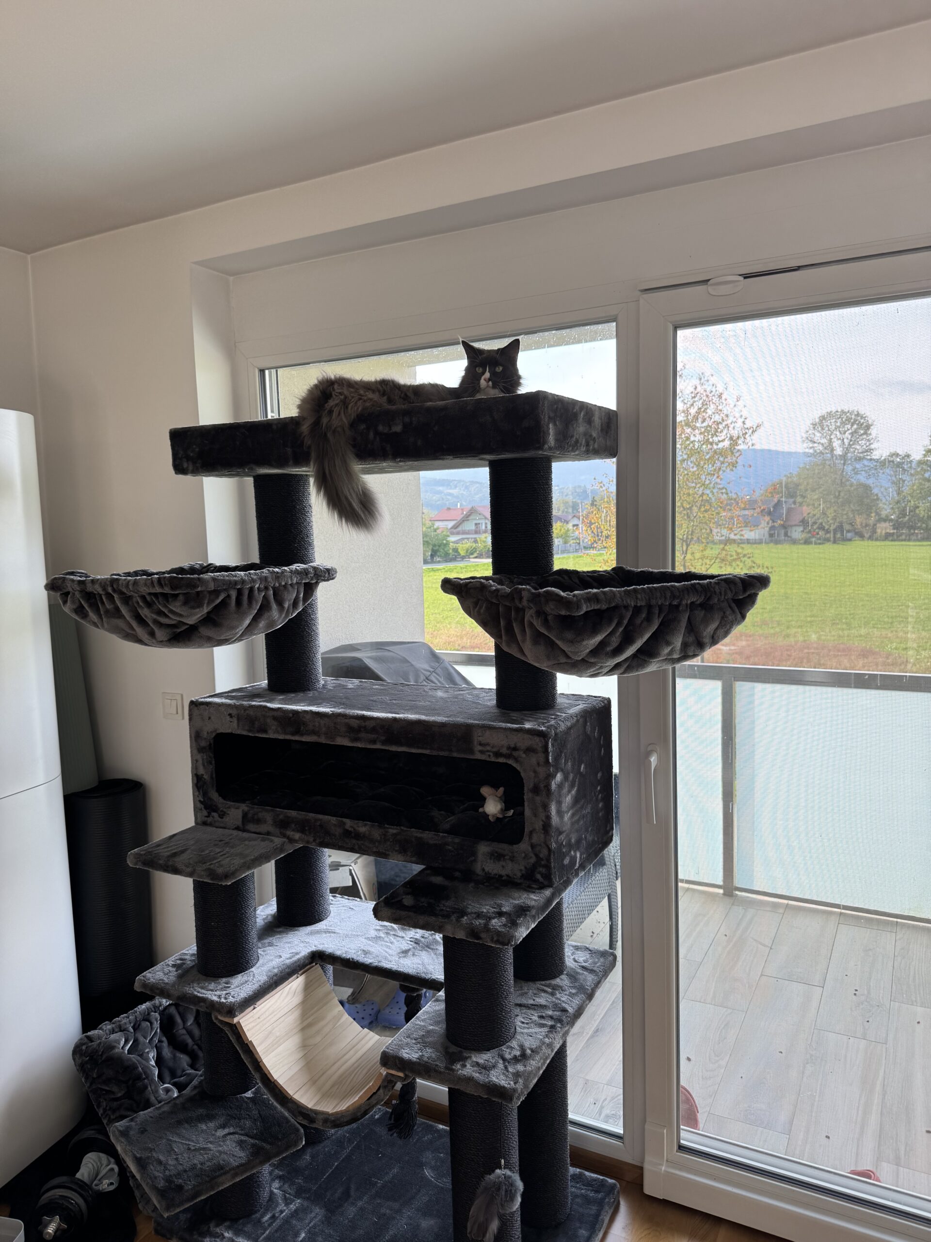 Heute geliefert und aufgebaut, Kater rein, sofortige Belagerung. Sehr stabil, gute Qualität. Ich kam ihn sehr empfehlen.