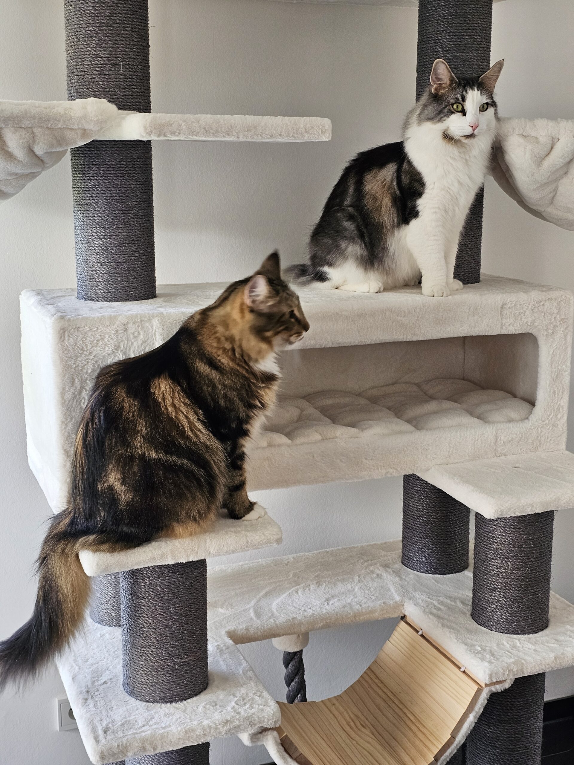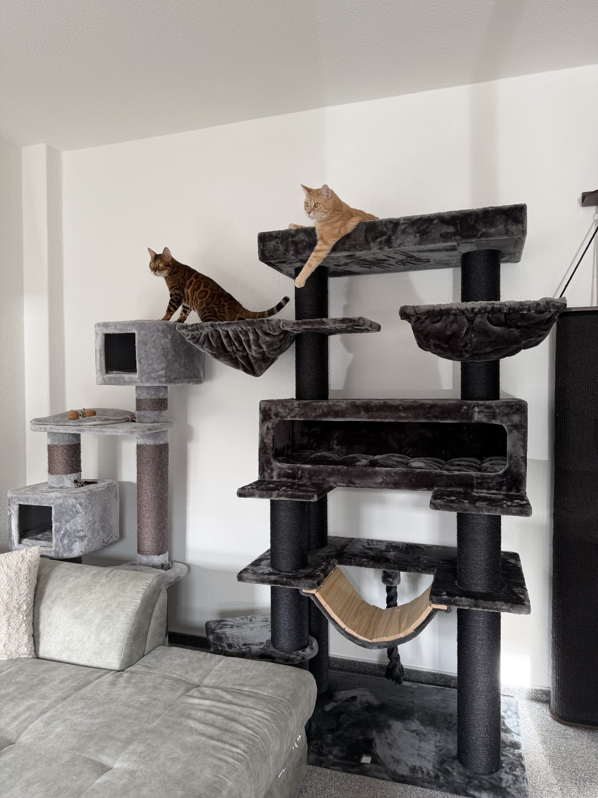 Hab 2 Kratzbäume (Lookout 198 und Maine Coon 117) bestellt… Lieferung war super schnell… Aufbau mit der Anleitung echt easy und die Bäume sind mega stabil und wurden gleich von meinen 3 Rackern angenommen