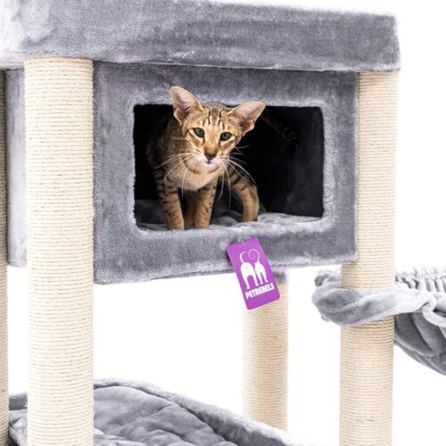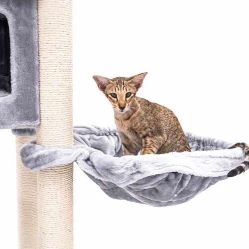 Mit einer Höhe von 150 cm ist der Mansion 150 ein Kratzbaum, den man nicht so schnell übersehen kann. Denn das schlichte Design überrascht mit viel Komfort – und was will und braucht eine Katze mehr? Die geraden Linien machen ihn cool und unaufdringlich, während der weiche Plüsch und das clevere Design deiner Katze Luxus und Wohlbefinden bringen. Dieser Kratzbaum hat alles was es braucht: eine großzügige schwingende Hängematte unten, ein gemütliches Schlafhäuschen, einen neugierig machenden Durchgang auf dem ersten Plateau und einen XXL-Loungekorb ganz oben zum Chillen. Dieser Kratzbaum ist kompakt und daher auch für kleinere Räume super geeignet. Aber lass dich nicht von seiner Größe täuschen – hier finden locker mehrere Katzen Platz!