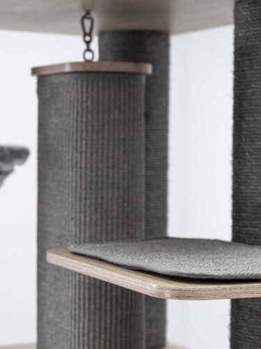 Hoher, moderner Kratzbaum mit Boxsack