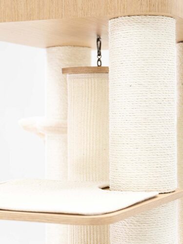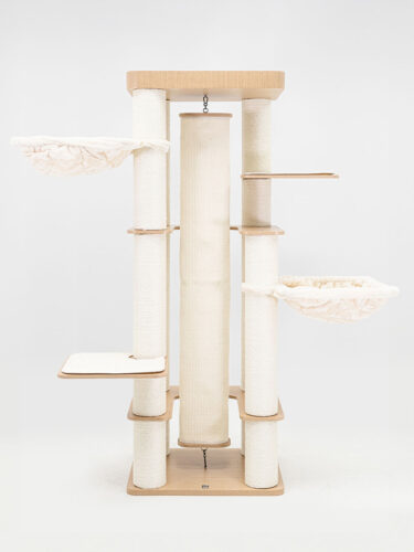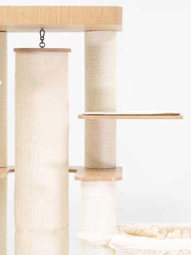 Hoher, moderner Kratzbaum mit Boxsack