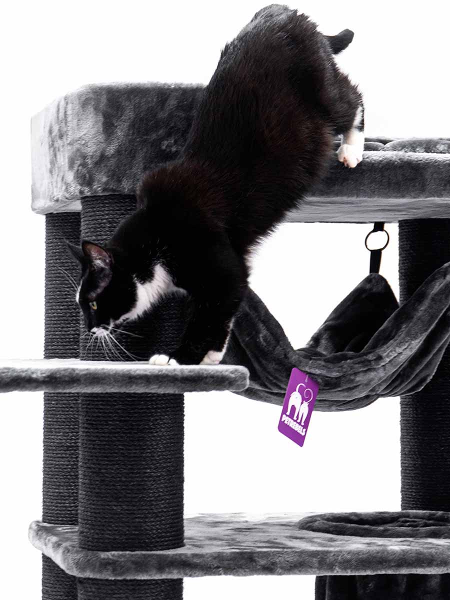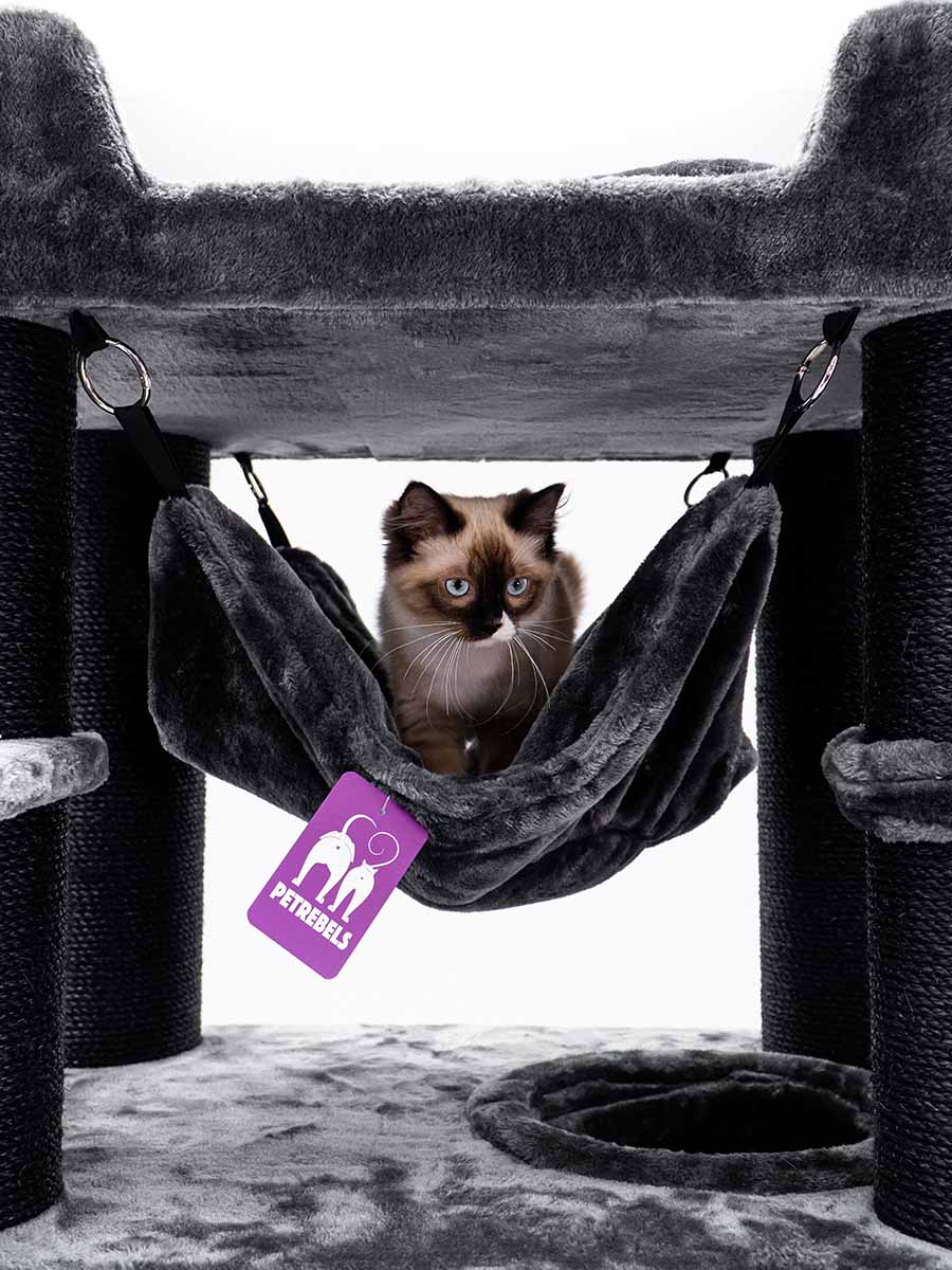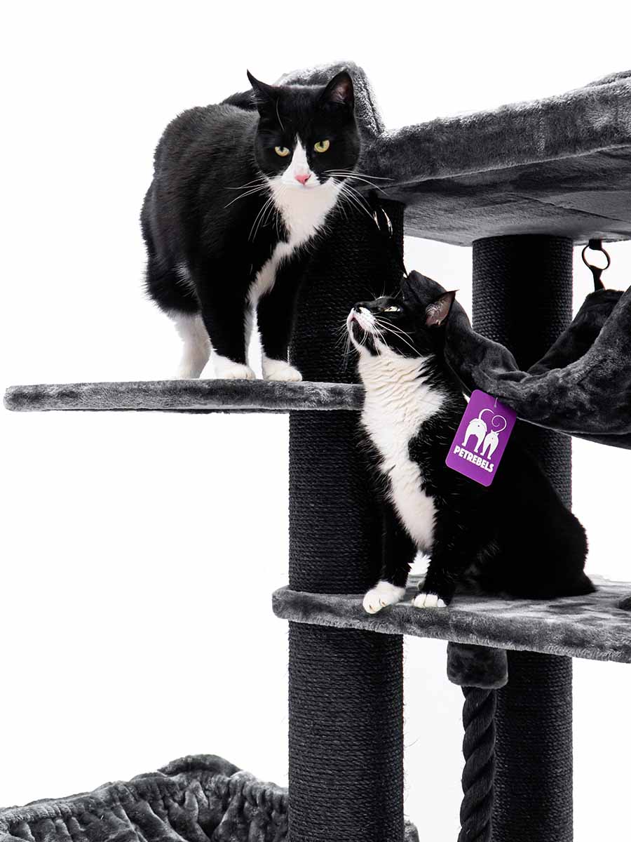 Und wir haben ihn wieder einmal verbessert, sprich verbreitert um deinem Rebellen noch mehr Platz zu bieten. Es wurden auch zusätzliche Plattformen hinzugefügt, damit selbst ältere Rebellen das XXL-Loungesofa auf dem Kratzbaum leicht erreichen können. Es gibt einen guten Grund, warum wir diesen Kratzbaum nicht loswerden können. Die superstabile Konstruktion in Kombination mit einer Fülle von sisalbezogenen Stämmen und weichen Hängematten macht diesen Kratzbaum ideal für die größten Katzen wie Maine Coons und Norwegische Waldkatzen. Als Sahnehäubchen hat dieses Möbelstück einen einzigartigen Spieltunnel, sodass deine Katzen sich nie langweilen werden.