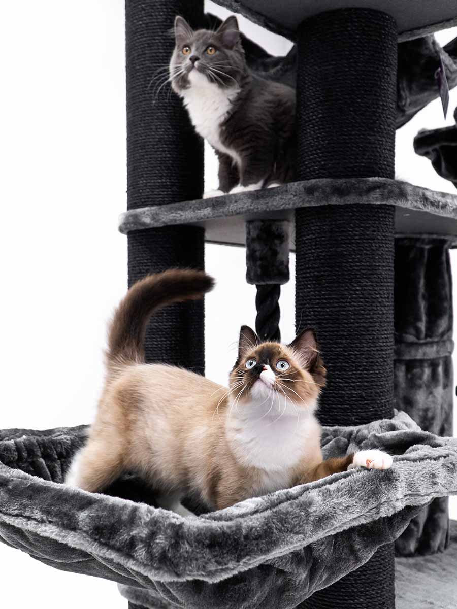 Riesiger Indoor-Spielplatz für Katzen mit Tunnel und mehreren Hängematten
