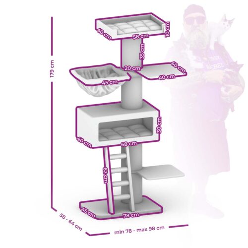 Unser Designteam hat unseren Ragdoll 179 speziell für Katzen und Katzenbesitzer entwickelt, die Wert auf Stil, Langlebigkeit und Qualität legen. Dieser Kratzbaum aus unserer Serie „The Rebels” verbindet klares Design mit besonders guter Qualität. Mit Plüsch in angesagten Trendfarben, extrem robusten Materialien und einem coolen Look ist er ein echter Hingucker in jedem Zuhause. Und das Beste daran? Dieser Kratzbaum ist absolut katzenfest und kratzerprobt. Deine Katze kann darauf herrlich entspannen, spielen, klettern, wetzen und kratzen. Dank der Treppe ist er ideal für ältere oder kleinere Katzen und dank der robusten Materialien auch für große und schwere Katzen bestens geeignet.