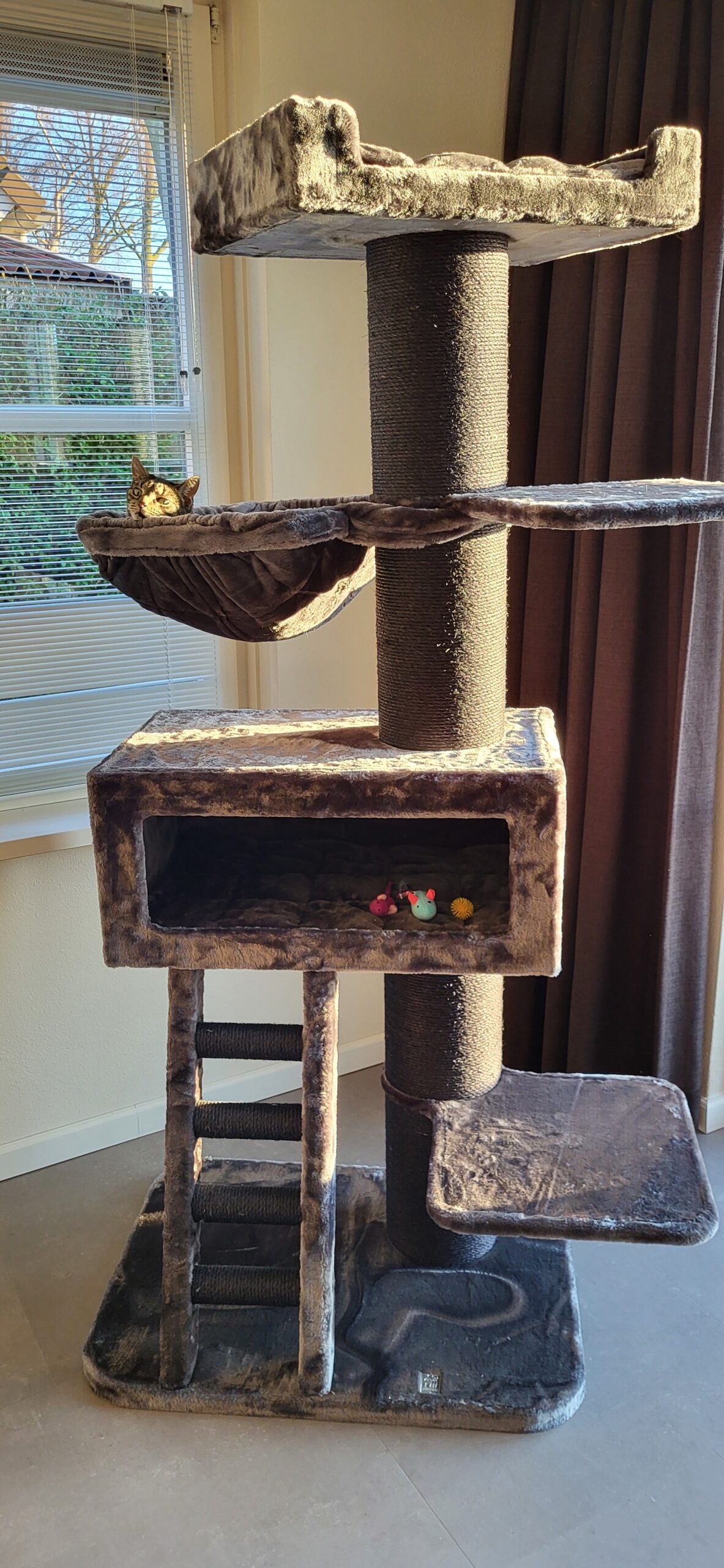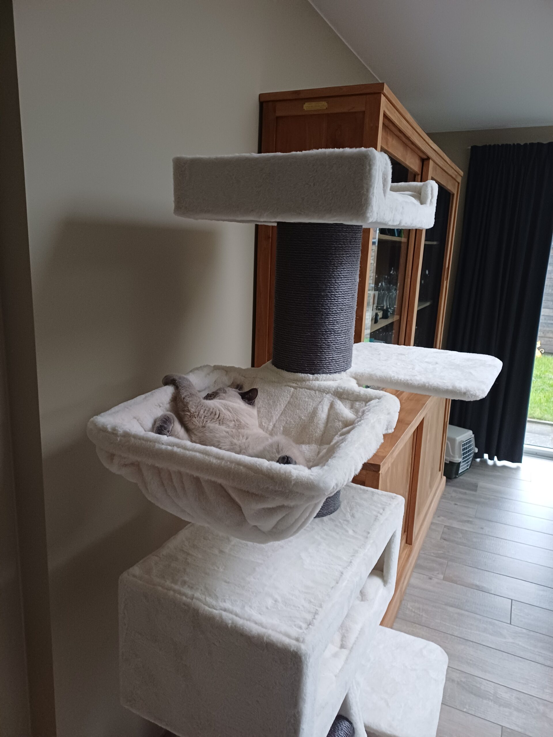 Geweldige krabpaal, heel erg blij mee! En de katten ook, haha! Staat stevig (heel fijn met 3 Maine Coons en een ietwat kleiner formaat HTK :-)), ziet er prachtig uit, hufterproof sisal, dikke kwaliteit pluche, XXL ligplekken, alles wat beloofd wordt in de omschrijving wordt dubbel en dwars waargemaakt. En last but not least: Snel verzonden en stevig verpakt. Toppers daar bij Pet Rebels!🤗