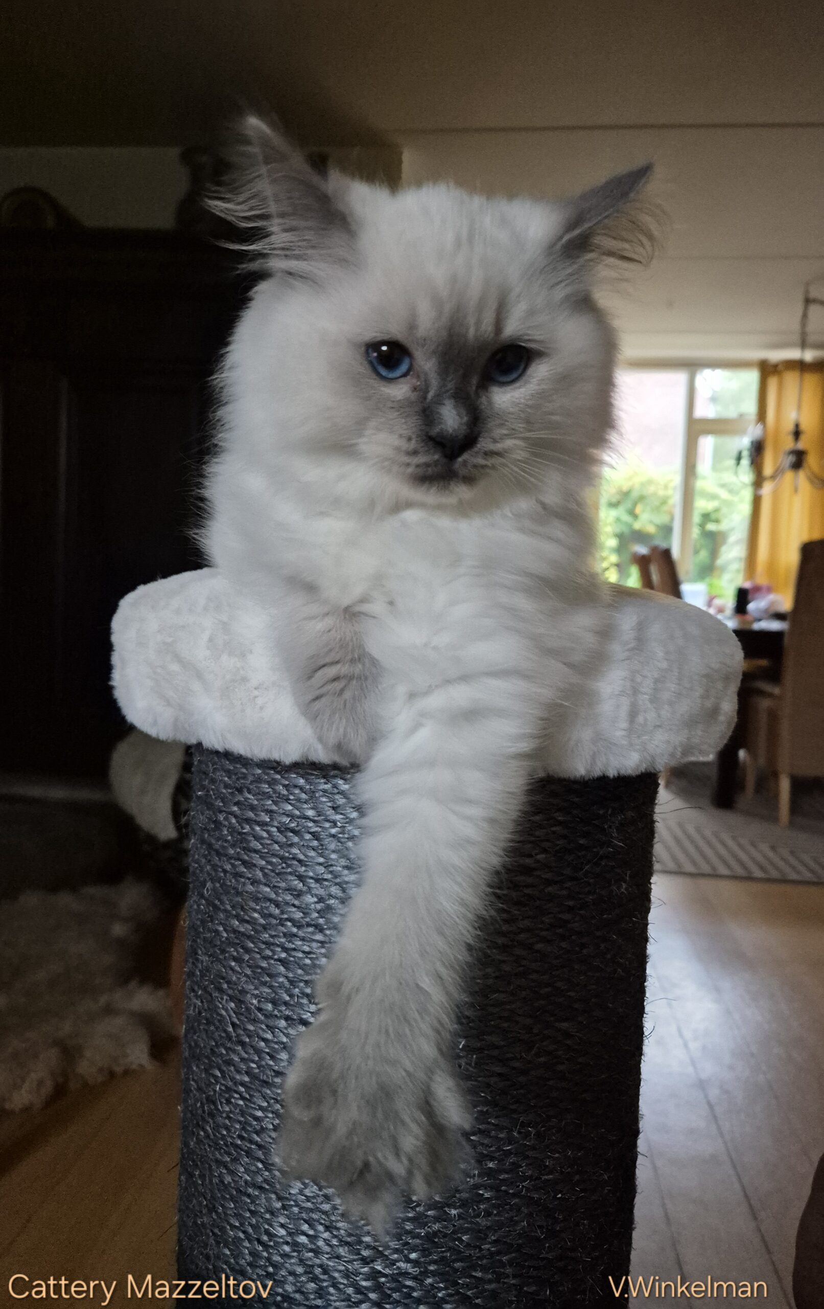 Onze Maine Coons waren na de kleine krabpaal toe aan een steviger, wij ook, constant oprapen of tegen je aankrijgen is niet prettig maar de circusachtige acts om met 4 poten op 10 cm doorsnede te blijven waren hilarisch. De nieuwe paal is fantastisch, stevig en veel plezier ermee.