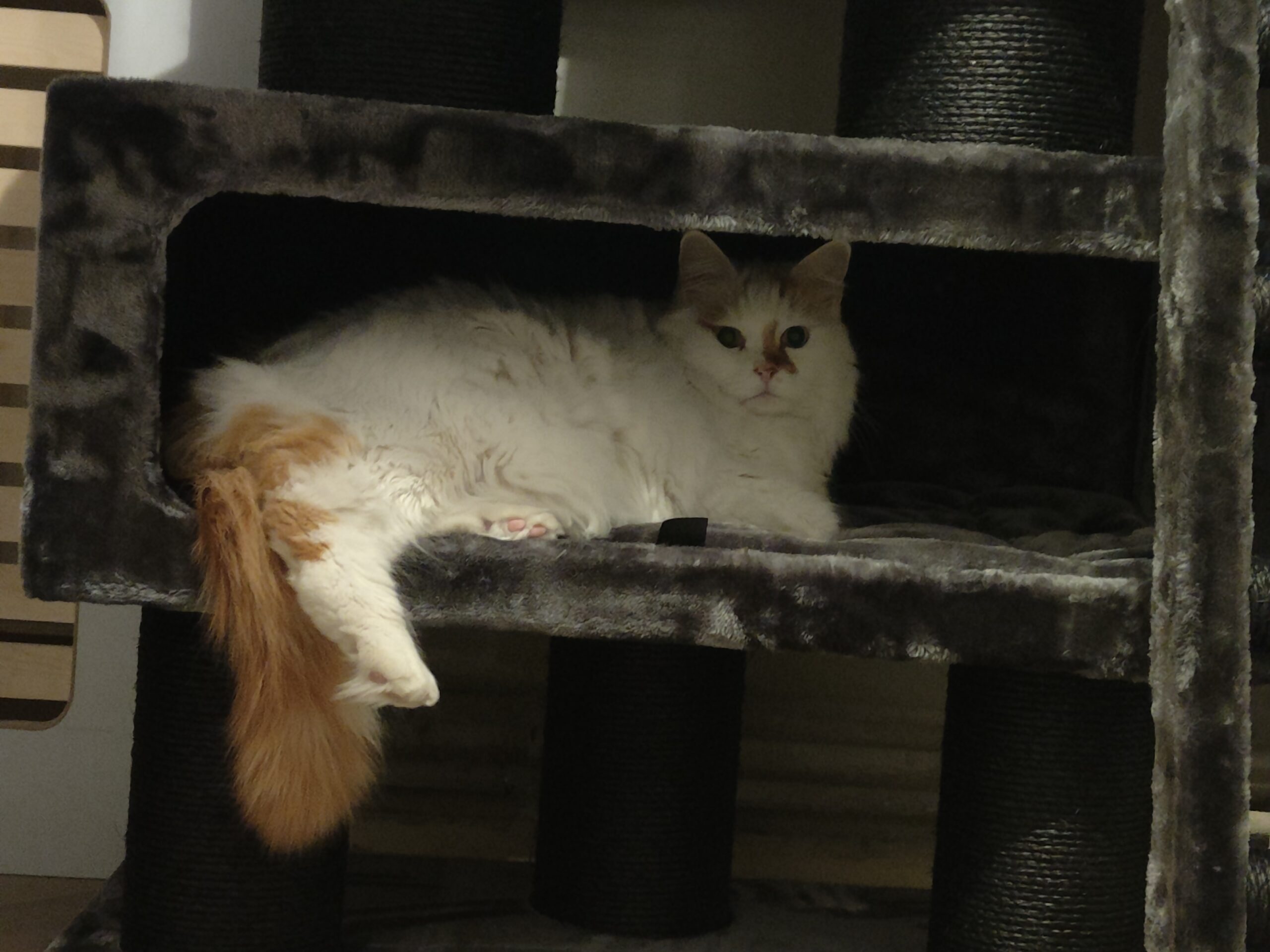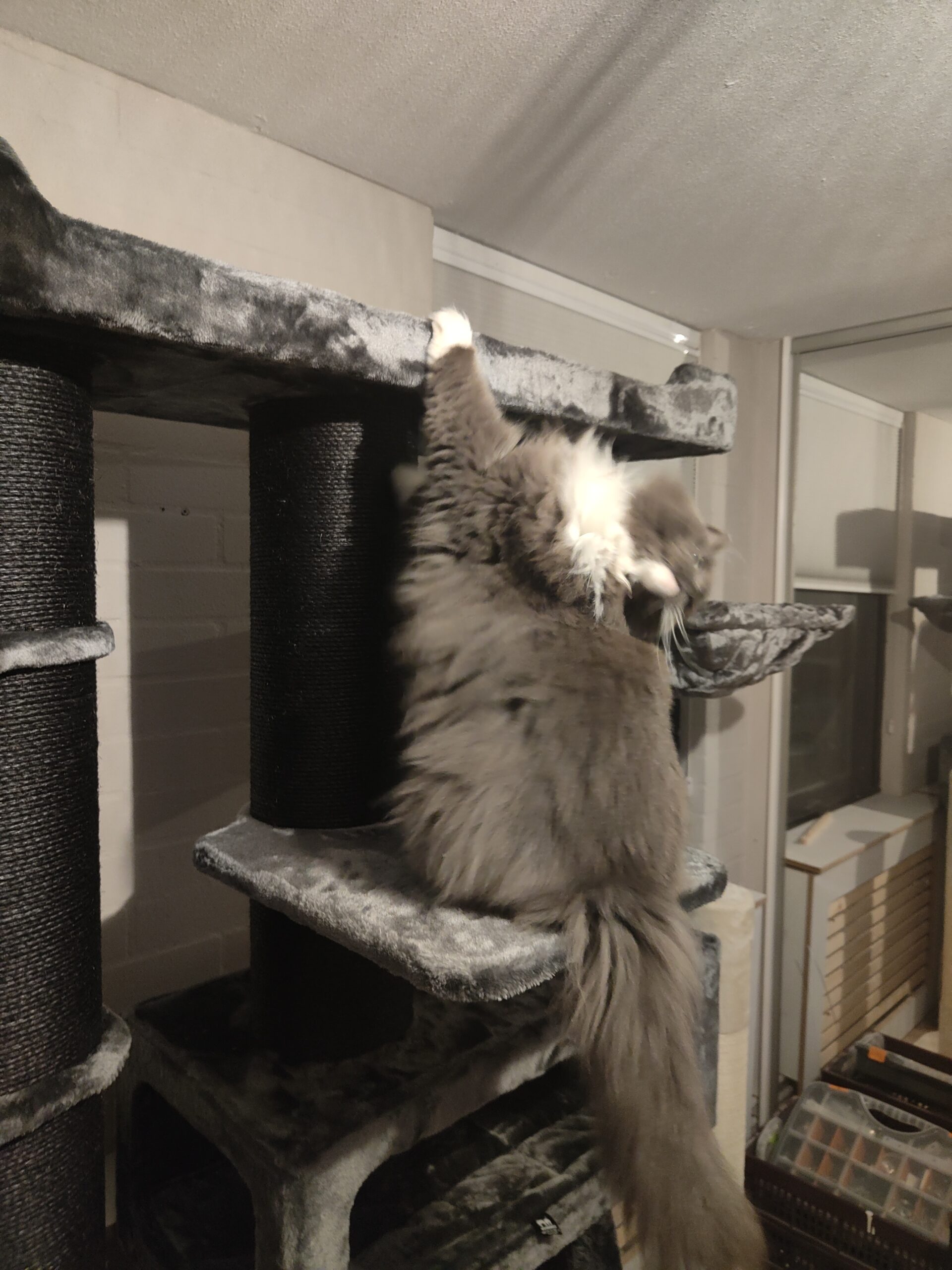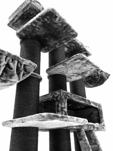 Mon Tayiko étant un Norvégien de 7kg, pas facile de trouver un arbre à chat lui résistant et ne pliant pas sous son poids.