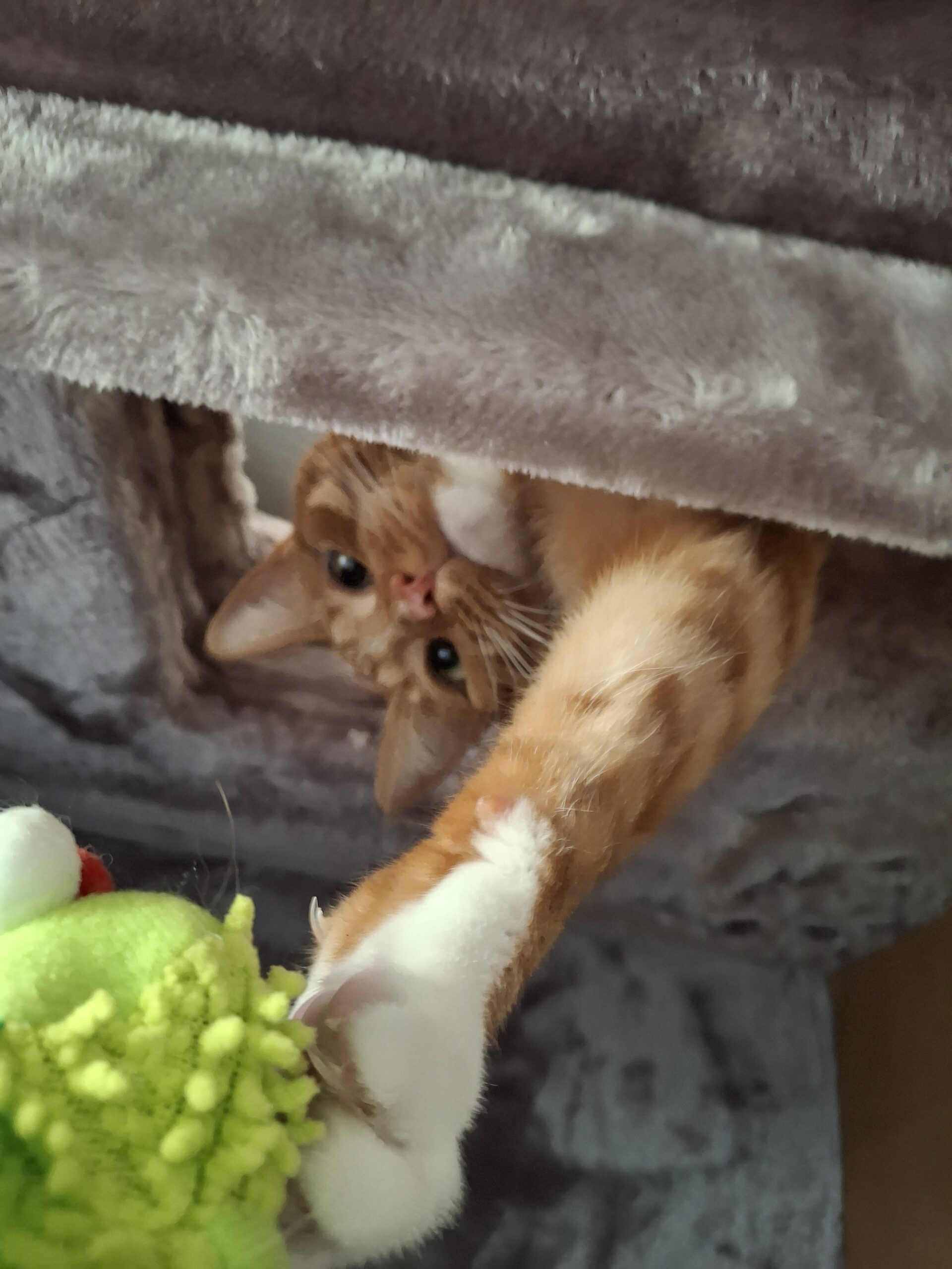 Is auf eine Schraube, die fehlte. Ausgerechnet die lange. Toller Kratzbaum. Memo ist zufrieden. Angstkater. Kuschelt sich gerne in die obere Höhle. Ganz oben traut er sich wohl nicht. Mein Geschenk an den Plüschi, da wir umgezogen sind und er einen sicheren Rückzugsort brauchte.