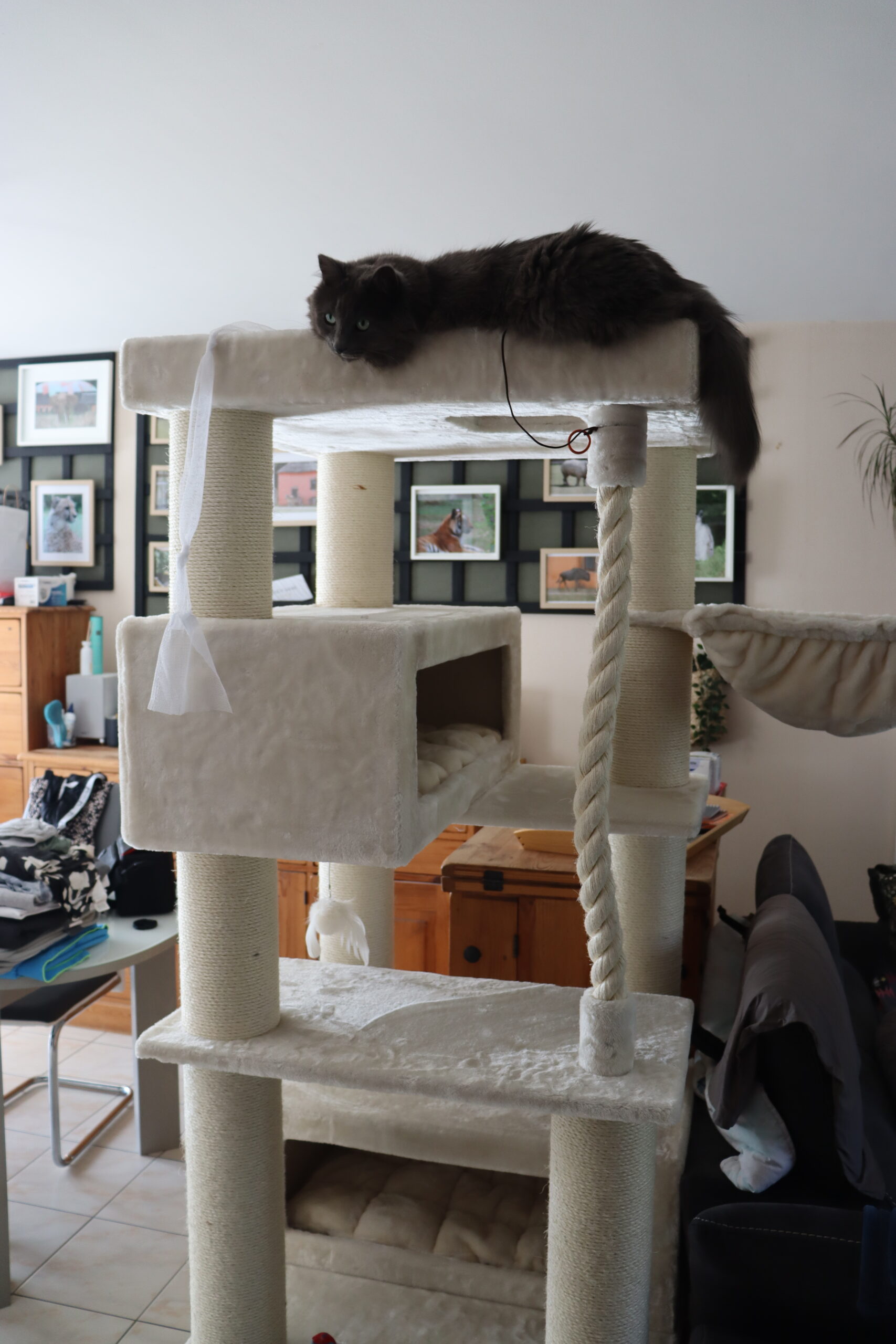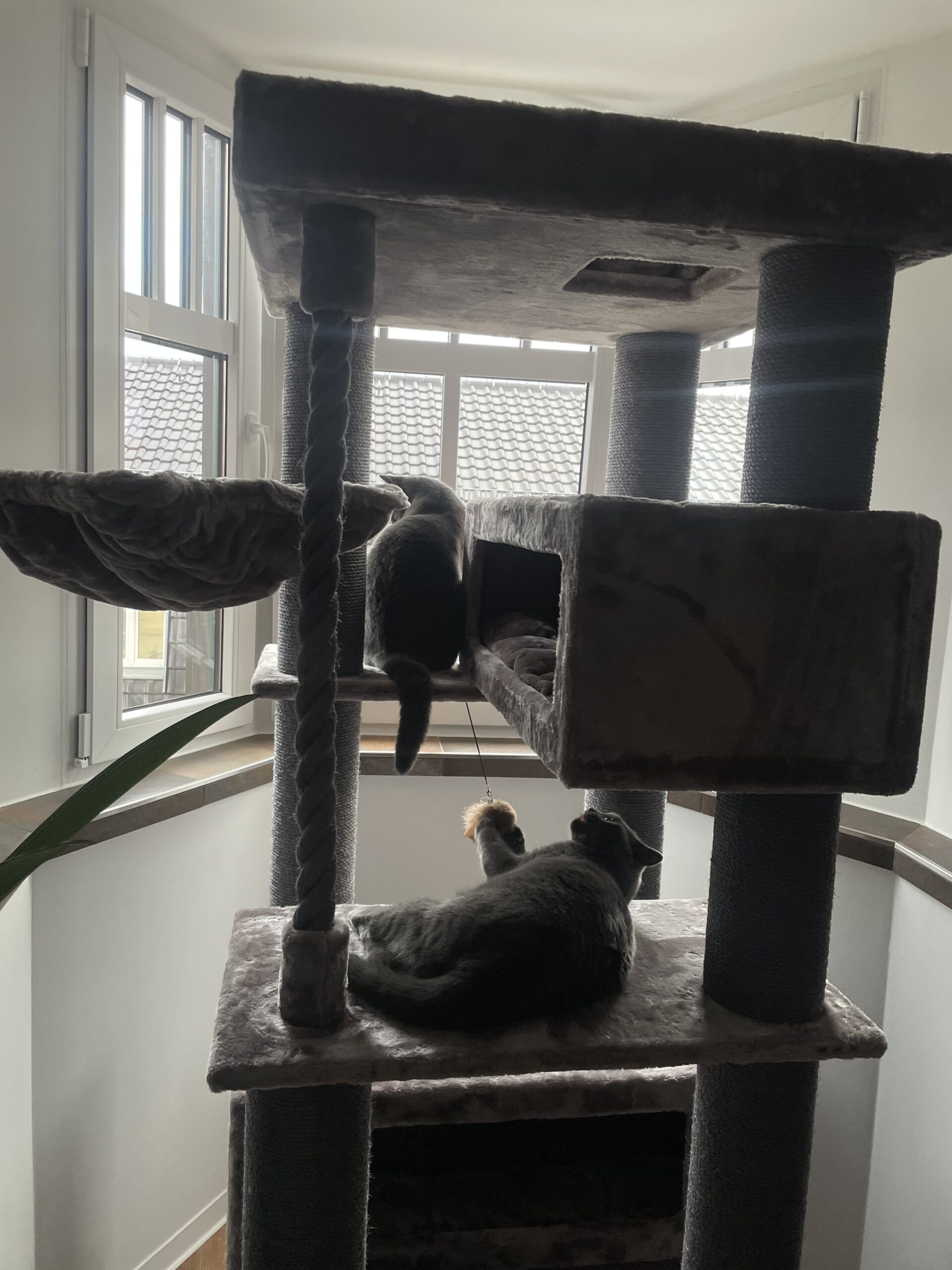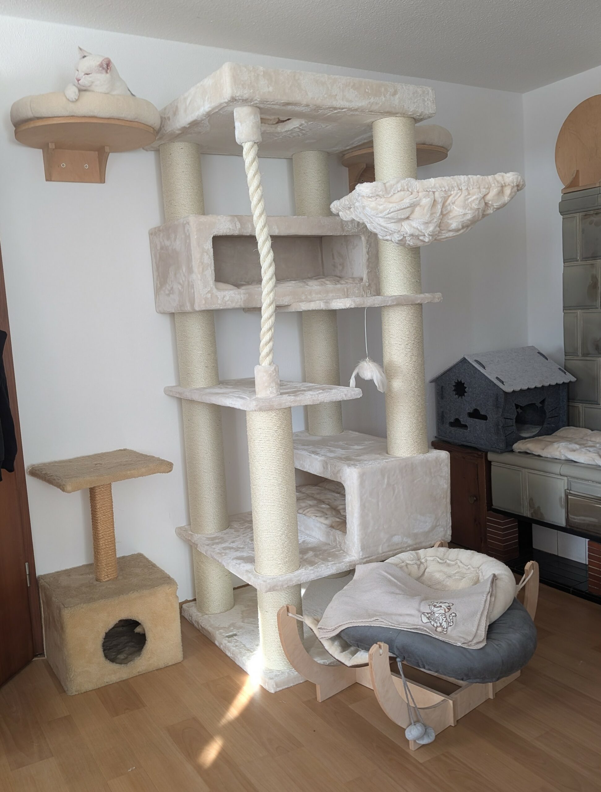 Der Kratzbaum ist unglaublich stabil, da wackelt nichts, er steht stabil und sicher wie ein Schrank.