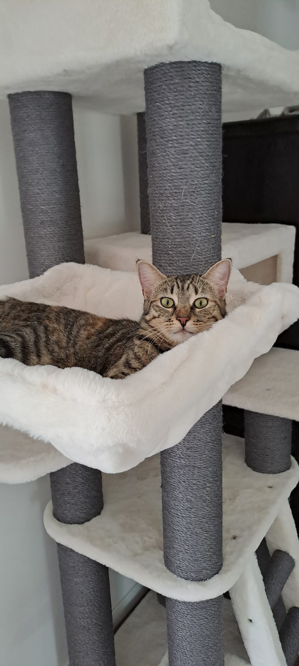 Der Kratzbaum ist perfekt und vor allem im Mehrkatzenhaushalt großartig. Sehr stabil und jede Katze findet ein schönes Plätzchen.