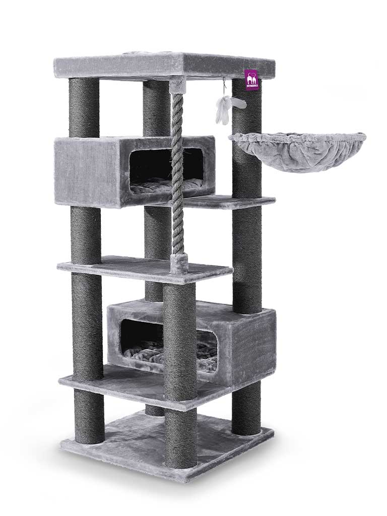 Love this Turnpike 190 cat tree. It arrived quickly, and wasn’t too difficult to build, with very clear picture instructions. It is extremely robust, with lots of room for playing and sleeping. I chose this one because I have 2 BSHs – one of which is quite big. This cat tree is perfect for them – plenty of room, – there is no way they can pull it over. Also, all platforms are very accessible for cats that are not real climbers of jumpers, so getting on the top platform is no problem. Customer service at Petrebels was really helpful – gave me excellent advice and responded to every question promptly. The superior quality of both the product and service makes it a clear recommendation. I imagine this cat tree will last for years, but will definitely be buying from this company again. Thank you Petrebels!