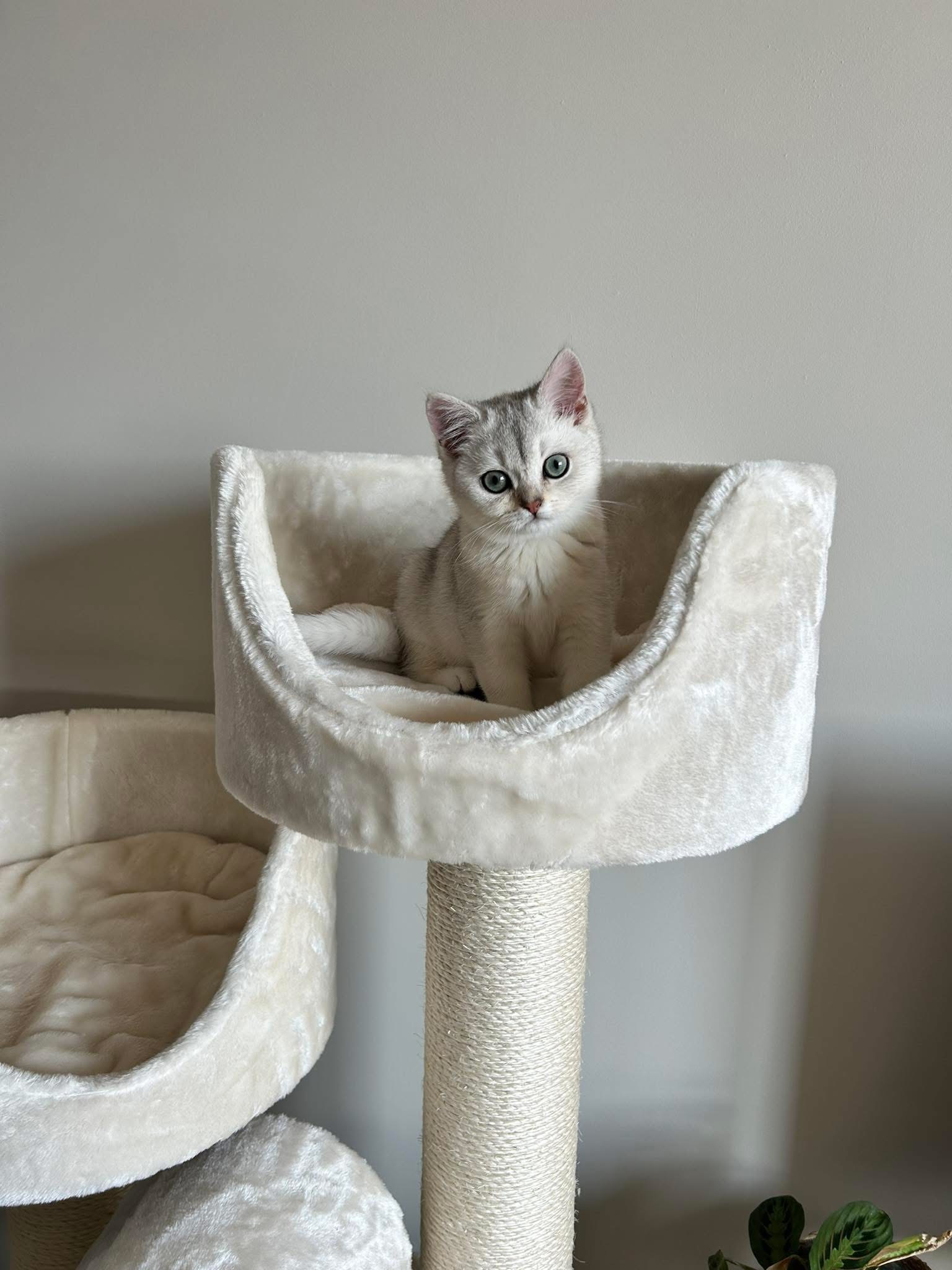 Einmalig schöner Kratzbaum mit minimalem Platzbedarf. Sehr stabil und robust gebaut. Kissen waschbar. Mir war Qualität sehr wichtig und die Liegemulden sollten ausreichend Platz für ausgewachsene Katzen haben. Kleine Katzenbabys sind schnell groß. So hoffe ich, dass er auch noch fleissig genutzt wird, wenn sie ausgewachsen sind.