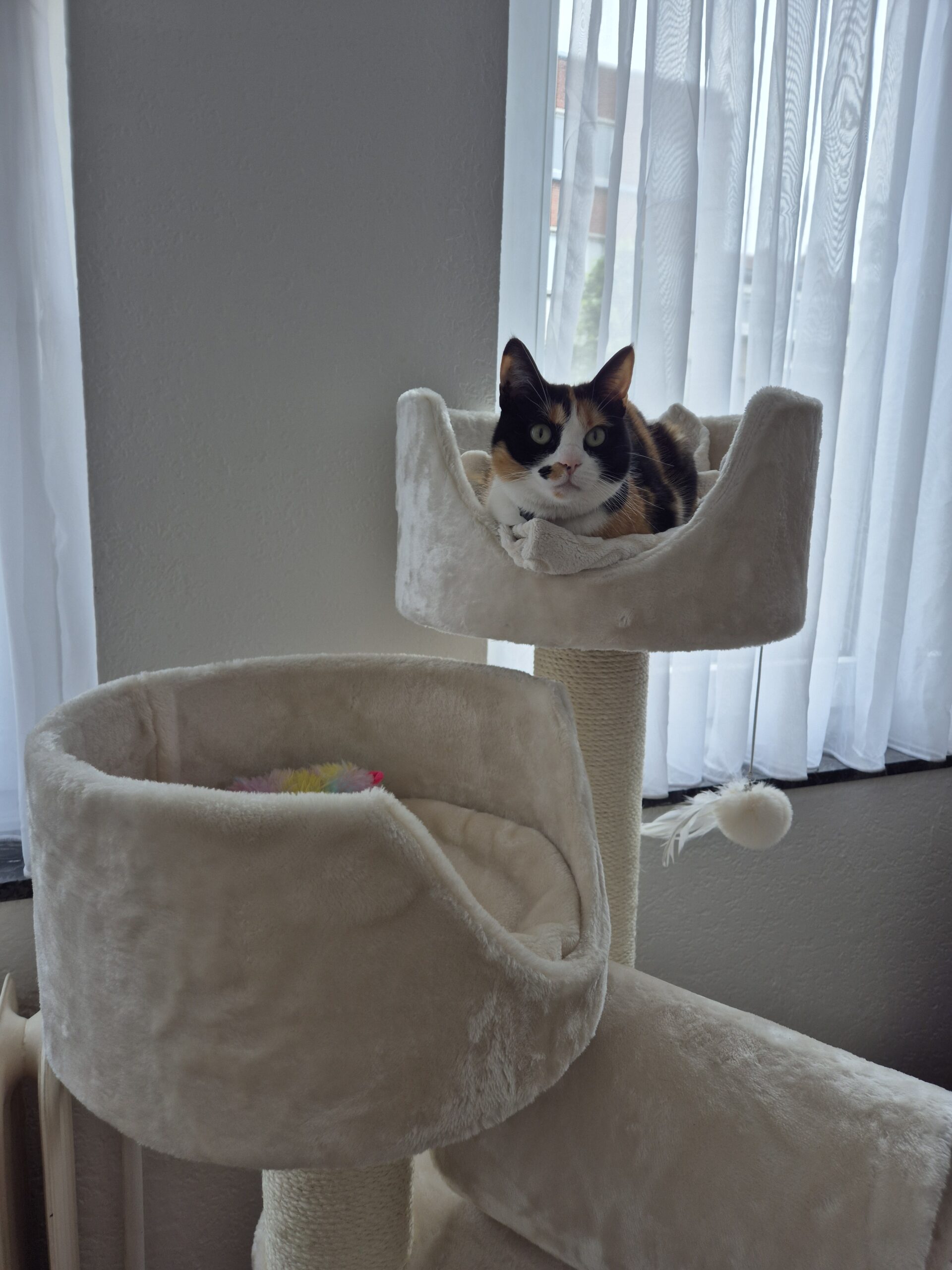 Uiteindelijk voor dit model gekozen, omdat het nog compact is en dus niet veel plaats inneemt in de woonkamer en ook geschikt is voor meerdere katten omwille van de verschillende sofa's.