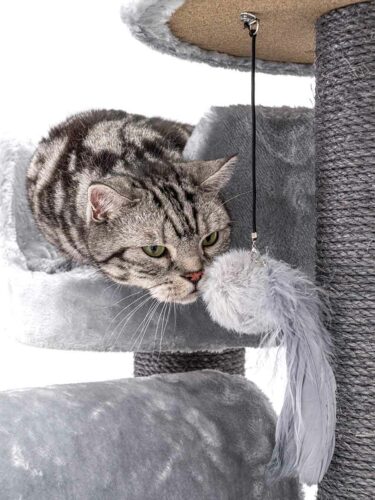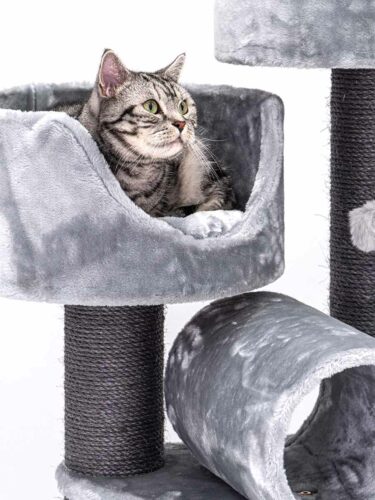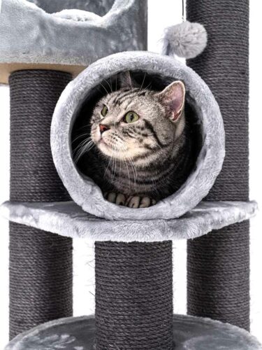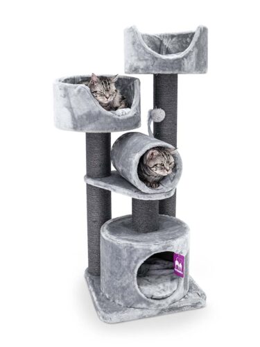 This is my second petrebel scratching tree. I wanted to give my cats additional room to play and climb. I got it yesterday and they already enjoy climbing it. The high borders of the sleeping beds make them feel comfortable and they enjoy the new perspective very much. The quality of the tree is high as usual. The scratching poles are thick and the tree is very stable overall. The roll is great for play and already well tested by my felines. Highly recommended!