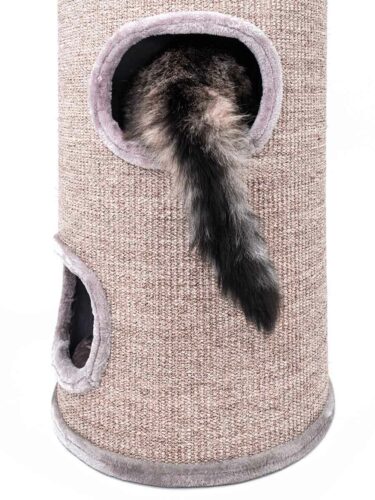 We purchased the Scratching Barrel Dome 110 for our two cats. We positioned it next to a window so that they can lie in the upper 2 sections to view out the window while snoozing. The lower position is great for them to hide while being able to view the entrance into the room. The sisal fabric is the best material for scratching as it does not shred like roping-wrapped posts. All together they scratch, climb, play, hide & sleep in the dome.