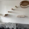 Dieses vielseitige Set kann auf verschiedene Arten zusammengestellt werden. Berücksichtigen Sie dabei die Größe und Kletterfähigkeit Ihrer Katze(n). Haben Sie kleine Katzen oder haben sie Schwierigkeiten beim Klettern? Wenn ja, hängen Sie die Teile eng zusammen. Haben Sie große, energiegeladene Katzen? Dann sollten Sie die Teile weiter auseinander hängen.