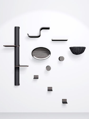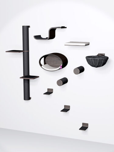 Dieses vielseitige Set kann auf verschiedene Arten zusammengestellt werden. Berücksichtigen Sie dabei die Größe und Kletterfähigkeit Ihrer Katze(n). Haben Sie kleine Katzen oder haben sie Schwierigkeiten beim Klettern? Wenn ja, hängen Sie die Teile eng zusammen. Haben Sie große, energiegeladene Katzen? Dann sollten Sie die Teile weiter auseinander hängen.