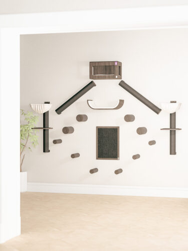 Dieses vielseitige Set kann auf verschiedene Arten zusammengestellt werden. Berücksichtigen Sie dabei die Größe und Kletterfähigkeit Ihrer Katze(n). Haben Sie kleine Katzen oder haben sie Schwierigkeiten beim Klettern? Wenn ja, hängen Sie die Teile eng zusammen. Haben Sie große, energiegeladene Katzen? Dann sollten Sie die Teile weiter auseinander hängen.
