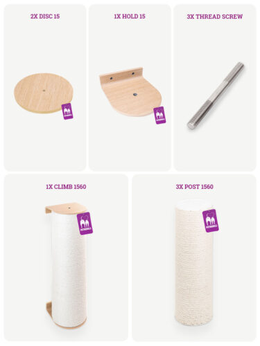 Dieser Kratzbaum ist ganze 247 cm hoch und eignet sich perfekt für energiegeladene Kletterer und Kratzfanatiker. Wenn Sie eine große Katze haben, die sich gerne streckt, während sie ihre Krallen schärft, dann ist eine lange Kratzfläche ein Muss. Dieser Kratzbaum kann auch horizontal oder diagonal als Laufsteg montiert werden. Dieses Set wird mit vier 15 x 60 cm großen Stämmen, drei Haltern, zwei Scheiben, Schrauben und stabilen Fischer-Wanddübeln geliefert.