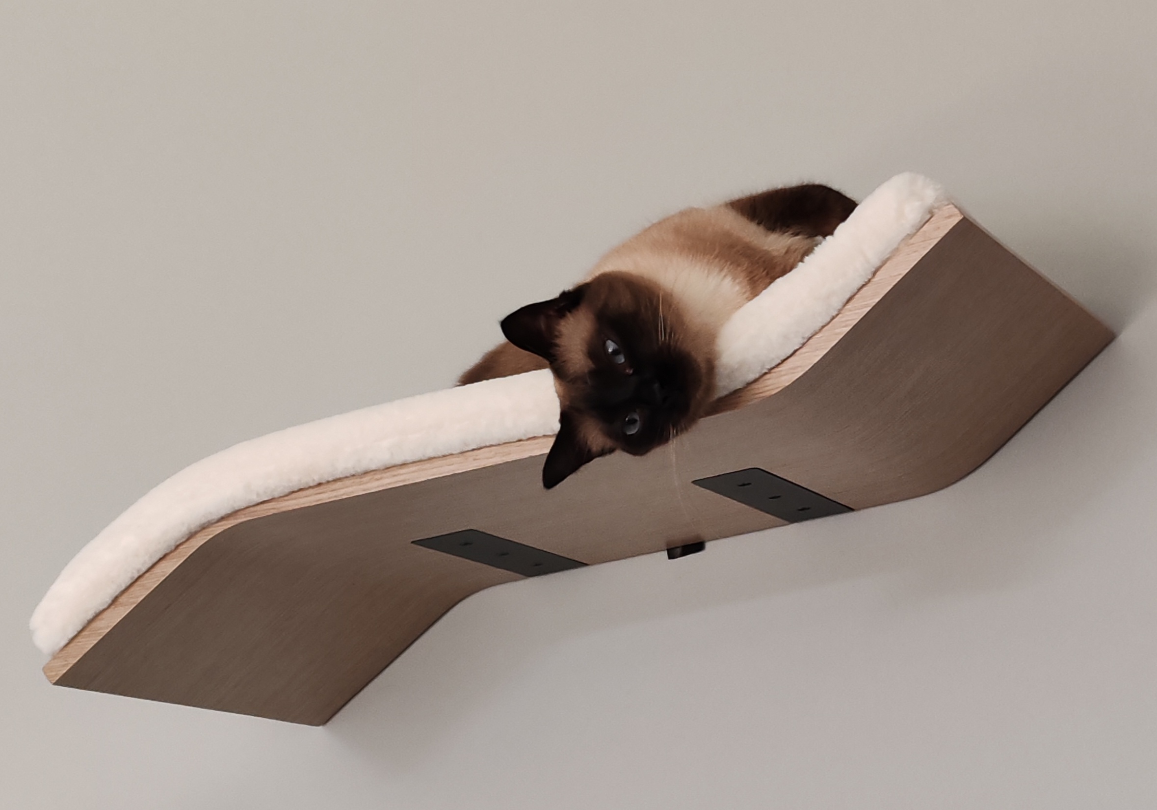 Wave 70 ist ein geschmackvoll geschwungenes Katzenbrett mit Kissen und ist Teil unserer Wall of Rebels: eine schöne Sammlung von Produkten für Katzen zum Schlafen, Spielen, Klettern, Herumrennen und Kratzen. Befestige Wave 70 tief am Boden, wenn deine Katze noch klein oder schon etwas älter ist. Oder hoch oben, wenn deine Katze verspielt und aktiv ist. Hast du mehrere Katzen im Haus? Natürlich kannst du sie auch mit einem schönen Schlafplatz verwöhnen – zum Bespiel Moon 40 ist kuschelig und gemütlich und Relax 50 und Curve 70 sind groß und weich. Und mit der coolen Wall of Rebels Steps, Scratch 70, Ladder oder Bridge kannst du deine eigene Welt bauen und ist jedes Teil ist dann leicht erreichbar für deine Katze.