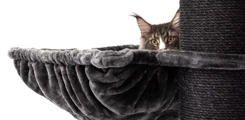 Cats feel safe in high places. Is your cat scared? Consider buying a cat tree with cozy sleeping spots, as this will give it a safe and warm place to adjust.