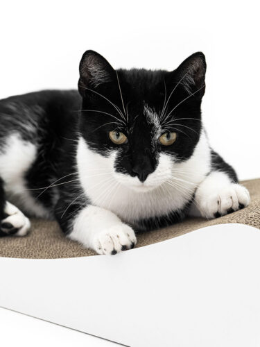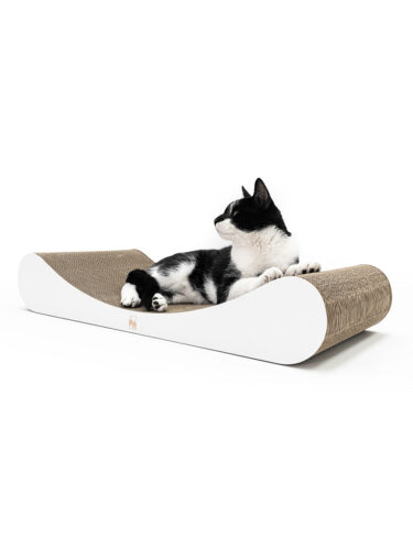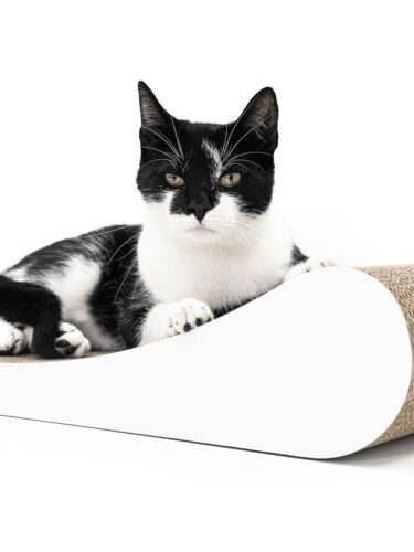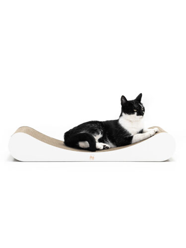 The Lily 75 cardboard scratching post has clean lines and a unique design: this cardboard scratching post looks like a crescent moon, making it the perfect place for your cat to scratch horizontally or relax. Why a cardboard scratching post? It’s simple: every cat owner knows that cardboard has a magical attraction for cats. This is because cats really like the material – it’s great for scratching and, when they lie on it, cardboard regulates their body temperature as it is never too warm or too cold. In other words: ideal!