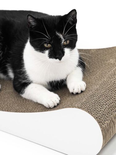 Many cats find it comfortable to scratch horizontally and lounge on their scratching cardboard.