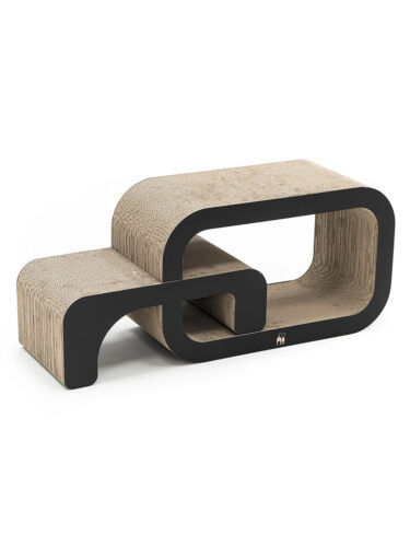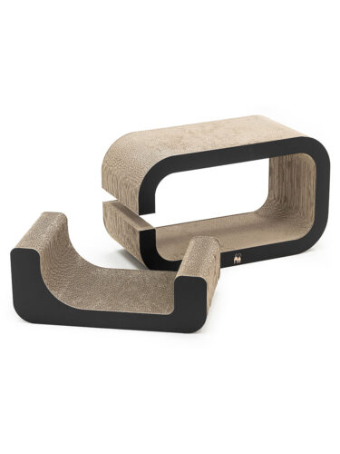 Are you looking for a multifunctional scratching post for your cat? Then our Max 55 is just right for you! This scratching post made from recycled cardboard consists of two parts, so you can set it up in different ways: as a compact whole with a cosy lying area or connected together for extra play and scratching space. The additional part is ideal as a practical attachment and turns the scratching post into a surprise: perfect for cats who love variety. Max 55 is made of sturdy cardboard and is lightweight, making it easy to transport.