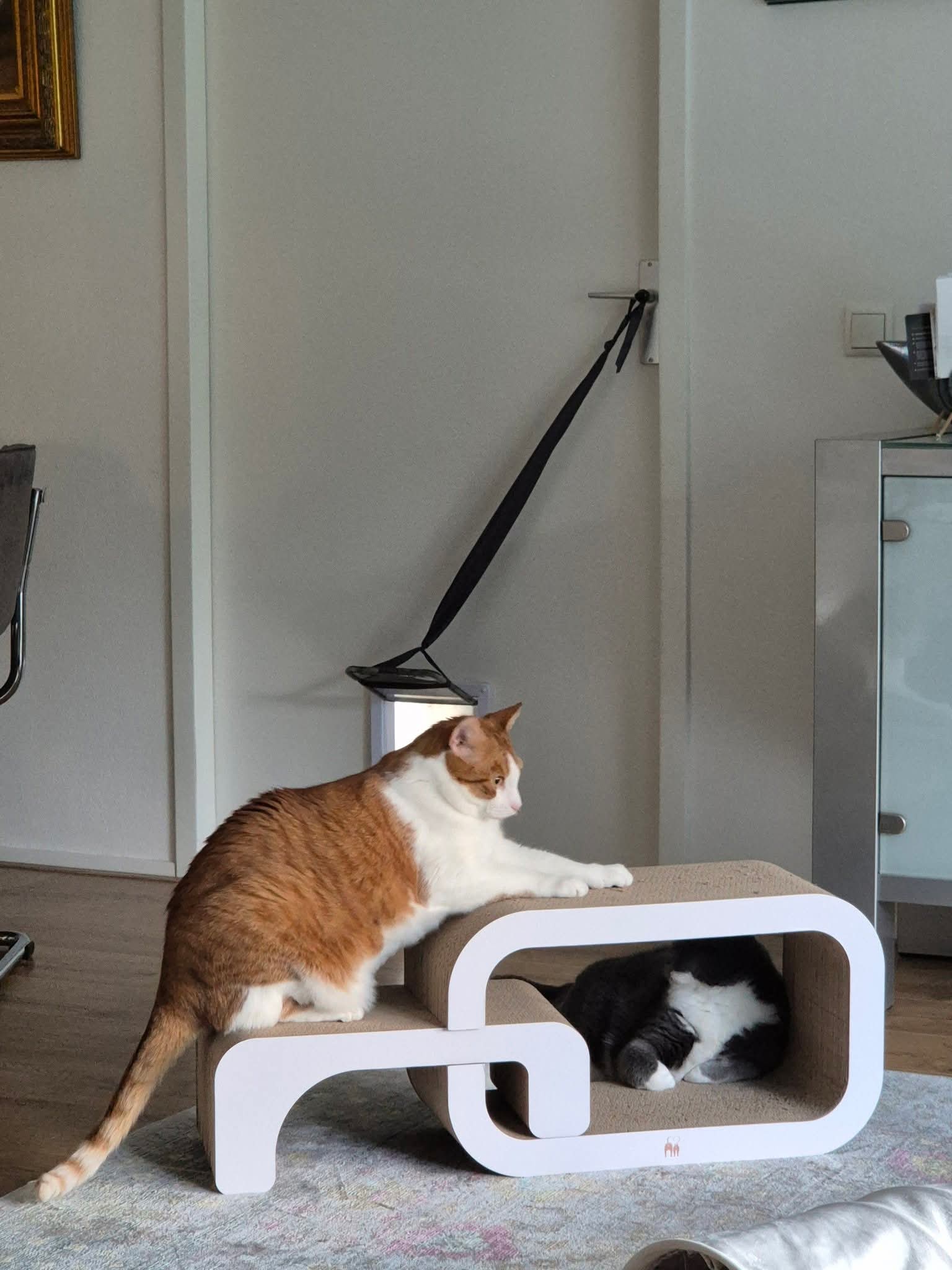 - A cardboard scratching post is good for your cat’s claws, muscles and mood