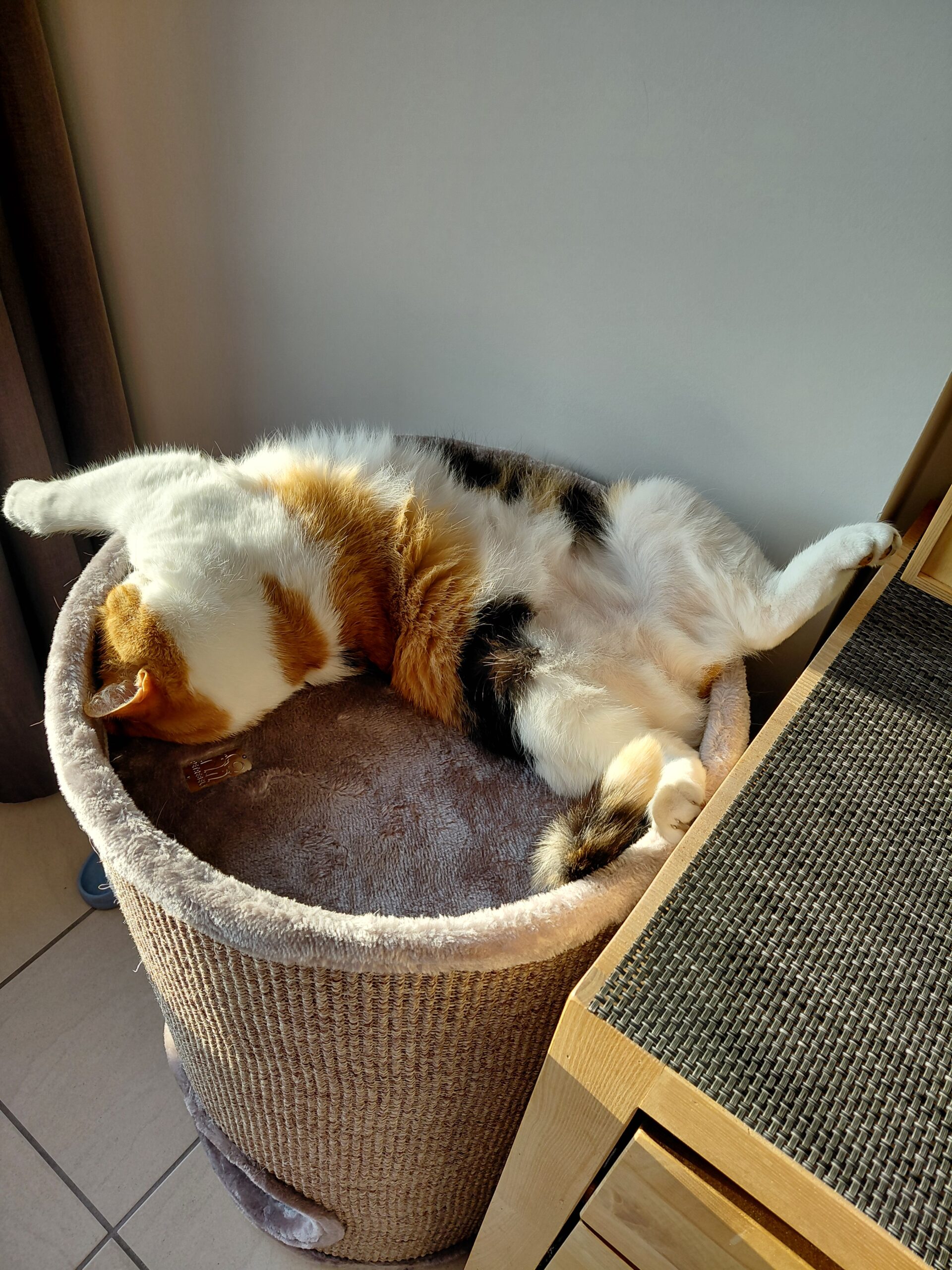 Très jolie colonne à griffer et de bonne qualité, j’en ai recommandé une seconde, je recommande. Par contre il y a un passage sur l’étage du milieu, du coup je pose le gros coussin dessus