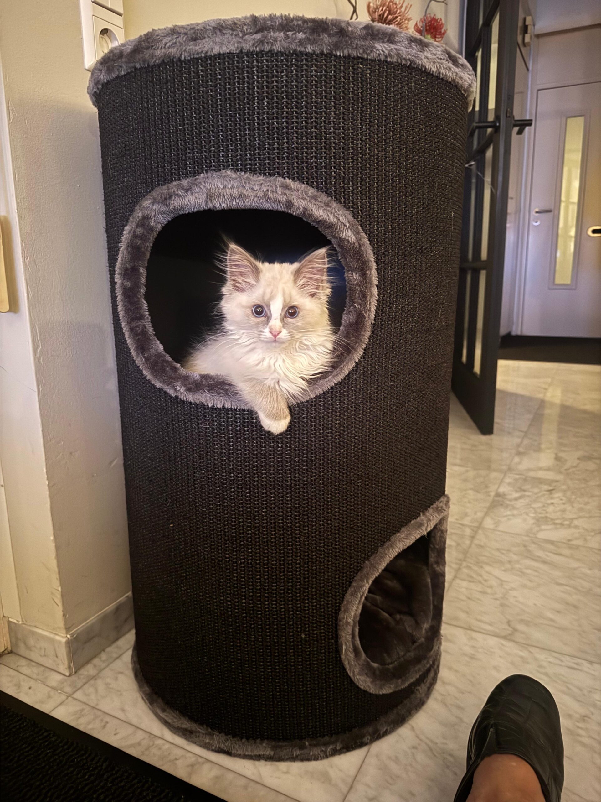 Wat een supermooie stevige krabton, onze Elmo sprong erop gelijk op, alhoewel hij altijd op schoot ligt verkiest hij nu het heerlijke zachte kussen van de dome.