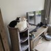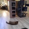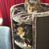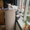Sinds de krabton naast mijn bureau staat, liggen 2 von 3 poezen boven en kijken mij toe tijdens homeoffice. Ze komen nu minder vaak op de tafel. De krabton wordt ook tijdens de jacht genomen. Ze klimmen er zeer graag omhoog en weer naar beneden. Tot nu toe viel hij niet om.