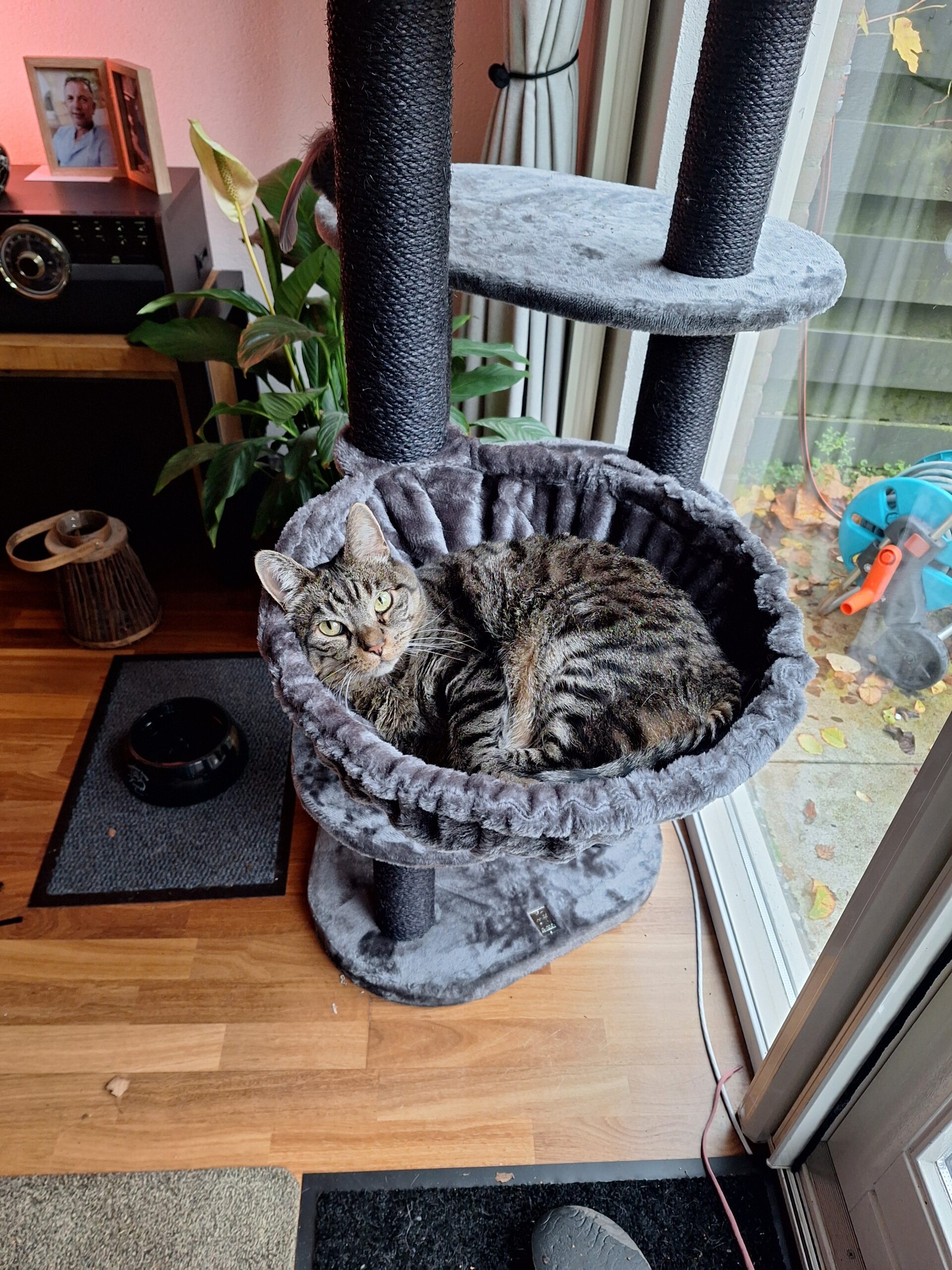 De uiteindeijke doorslag was de mooie grote diepe mand bovenin de krabpaal. Ik heb een grote (te dikke) kater die daar mooi de ruimte heeft zonder dat ik bang hoef te zijn dat hij van de krabpaal kan af vallen, er zit een rand rondom de mand.