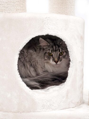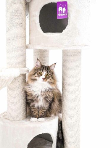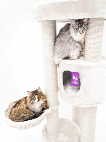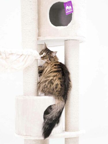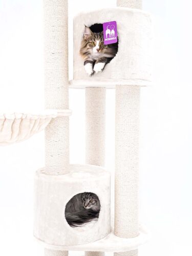 Cat tree Charlotte 180 is made also for big cats and cat breeds. They Nod strong and high posts to scratch and stretch. Because that makes them happy. But there is more! A super soft hammock, two fine sleeping houses and a large soft lounge basket on top. So there is plenty of room for several cats. And the extra thick base makes this topper super stable.