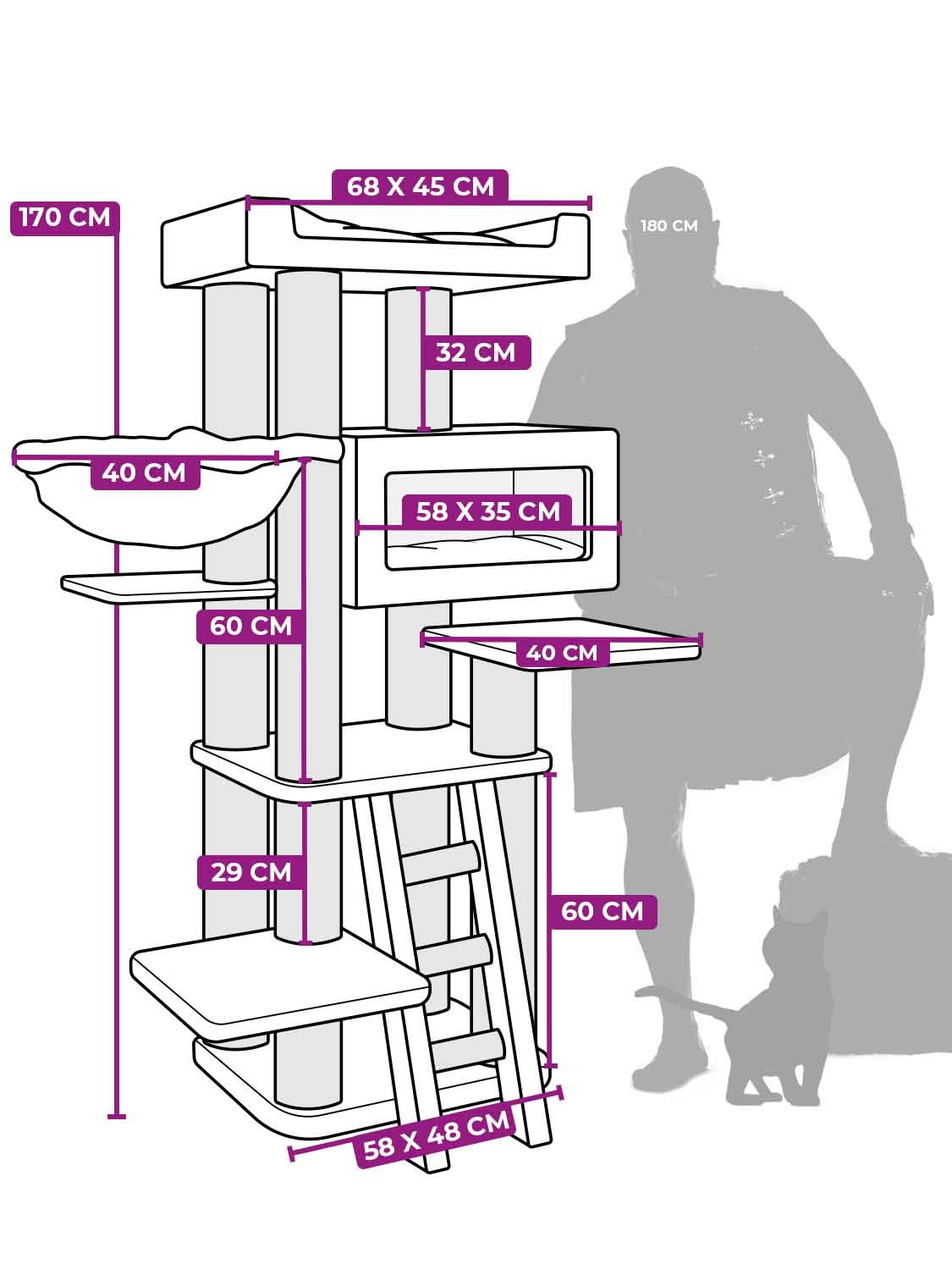Dimensions 58 × 48 × 170 cm