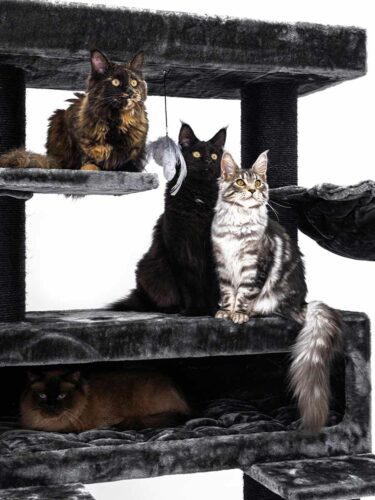 Der Kratzbaum sieht nicht nur äusserst schick aus, er ist auch unglaublich stabil. Selbst wenn meine fünf Maine Coon Katzen gleichzeitig darauf herumturnen wackelt er kein bisschen. Die riesigen Mulden und grosszügigen Betten sind sehr beliebt – endlich ein Kratzbaum der meinen fünf Riesen gerecht wird.