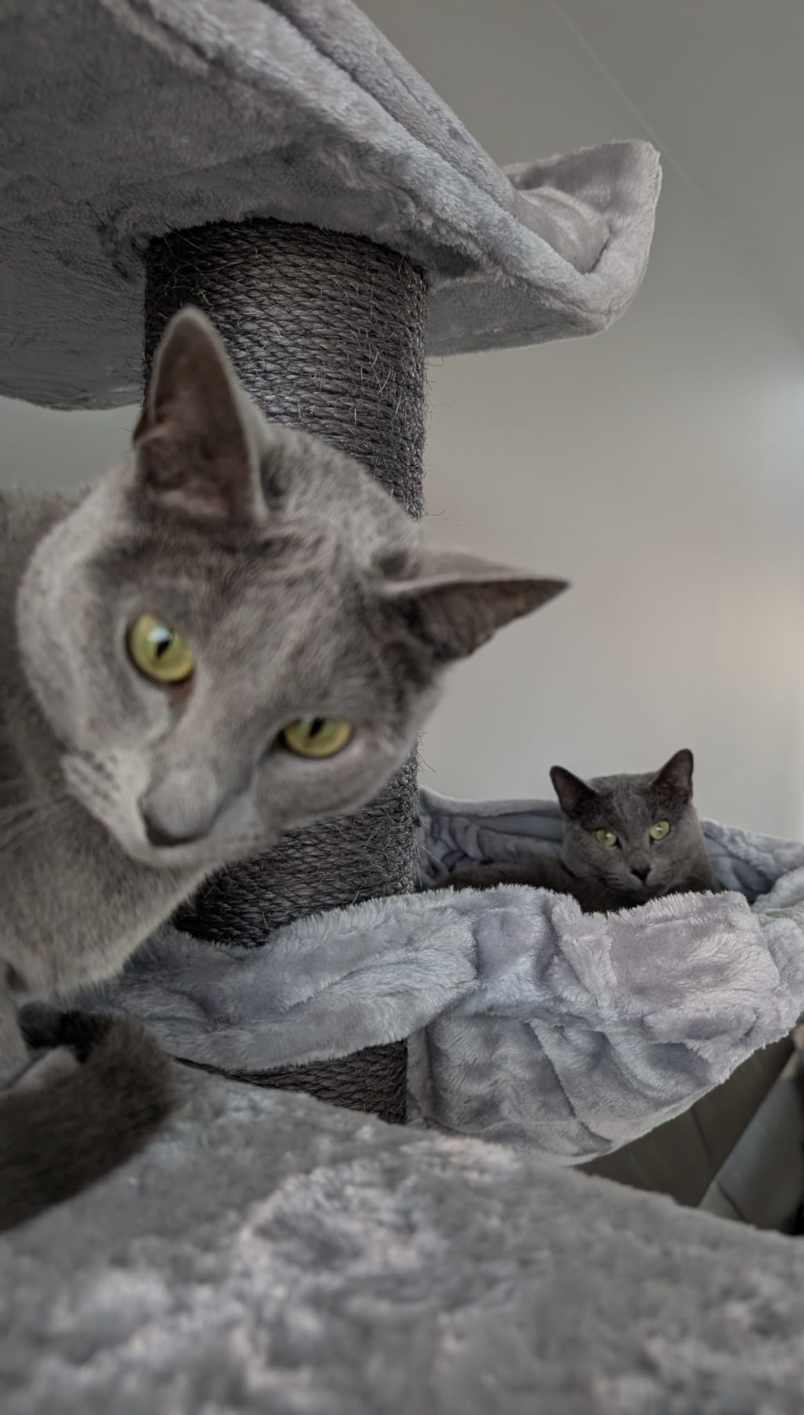 Wunderbar, heute bekommen, wurde sofort von unseren beiden riesigen Maine Coon Damen angenommen. Unsere prächtige Rose liegt mit ihren 7200 Gramm wie ein Fliegengewicht in der Mulde und ihre Schwester Lilly macht es sich in der Höhle bequem. Standfest und schön kuschelig bietet der Baum für unsere langen Katzen mit ihren langen Schwänzen ausreichend Bewegungsfreiheit. Super ?