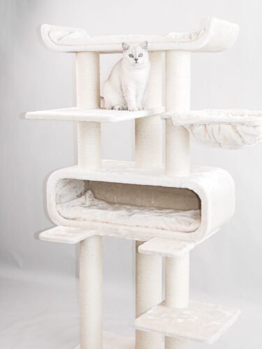 High but compact cat tree, so fits in any room in the house