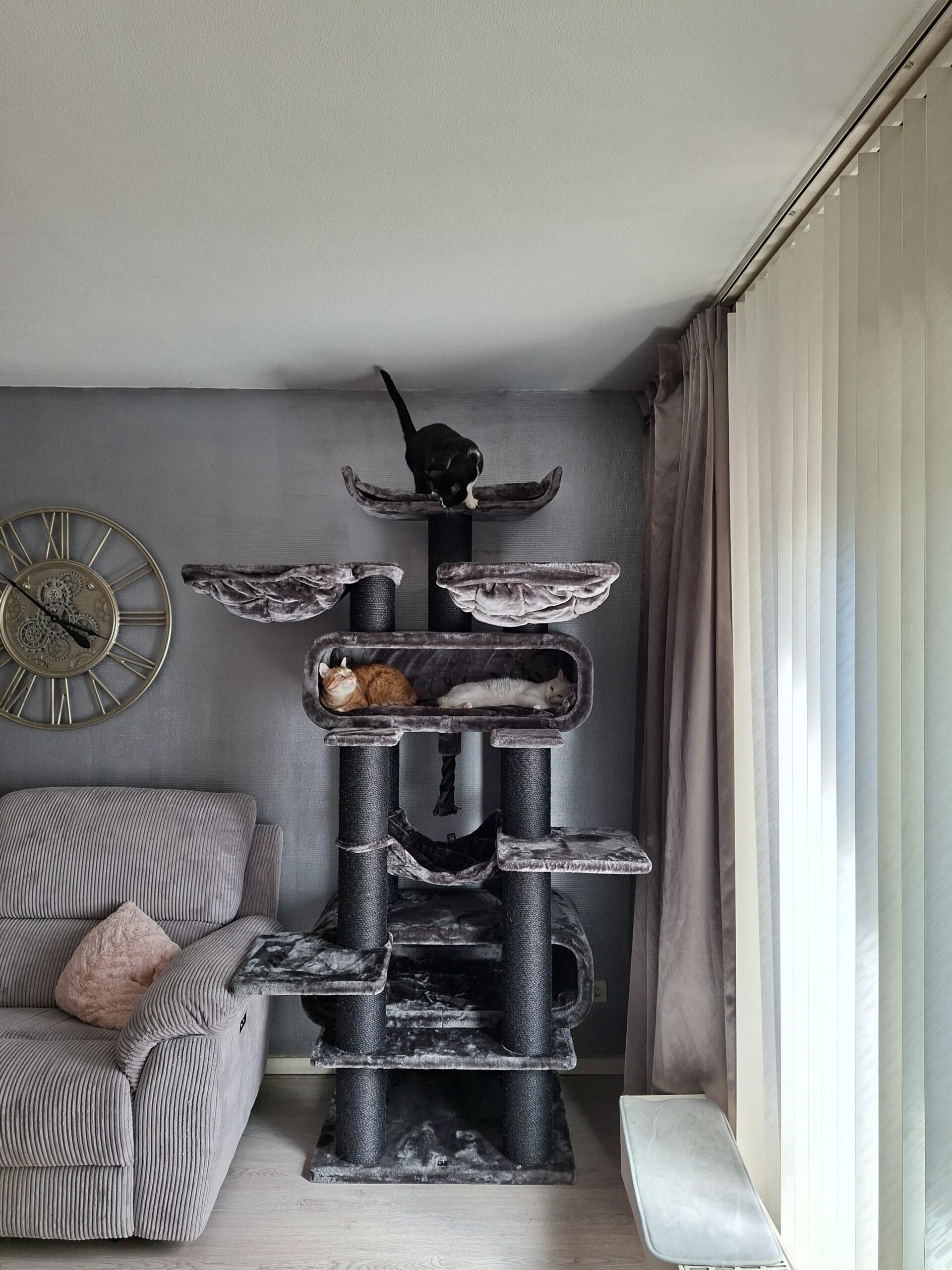Superstevige en mooie krabpaal (het is meer een paleis ?). Onze 3 boys zijn er dol op! Hele goede kwaliteit. Aanrader!