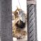 De krabtoren is een echt villa voor onze Nibbs! Al van het eerste stukje was hij nieuwsgierig om alles te verkennen. De toren is erg degelijk en lijkt oersterk. De kleur (grijs) oogt erg mooi, ons Britje valt bijna niet op tussen de fluweelzachte kussens. Er zijn meer dan zeven ligplekjes. Het allerhoogste plekje leek in het begin onbereikbaar, maar is nu al de favoriete plek van Nibbs! Overzicht over alles en iedereen. De foto's op de website geven een heel goed beeld van de grootte van de krabtoren en ook de kleur is gelijkend.