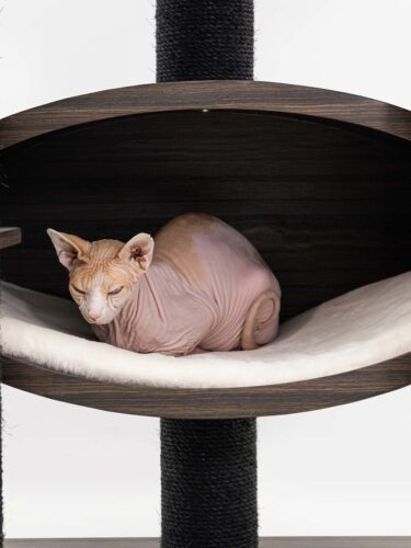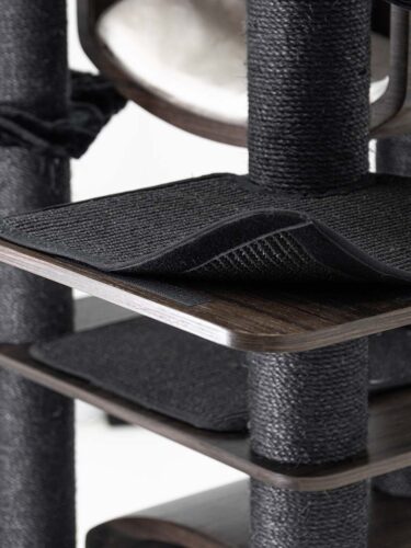Ik vind het design zonder teveel pluche erg goed. We hebben de hangmatten verwijderd, die worden niet gebruikt door mijn katten, en ze hebben de krabpaal erg groot gemaakt. Zonder hangmatten is de paal slanker en strakker.
