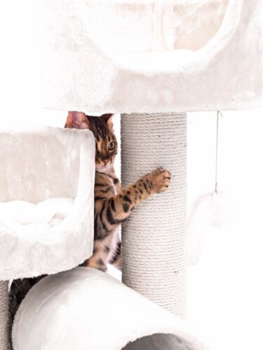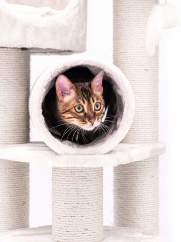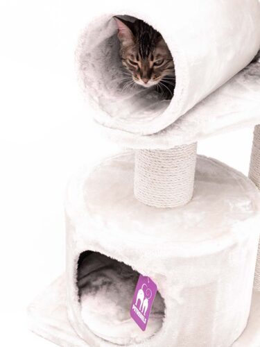 This is my second petrebel scratching tree. I wanted to give my cats additional room to play and climb. I got it yesterday and they already enjoy climbing it. The high borders of the sleeping beds make them feel comfortable and they enjoy the new perspective very much. The quality of the tree is high as usual. The scratching poles are thick and the tree is very stable overall. The roll is great for play and already well tested by my felines. Highly recommended!