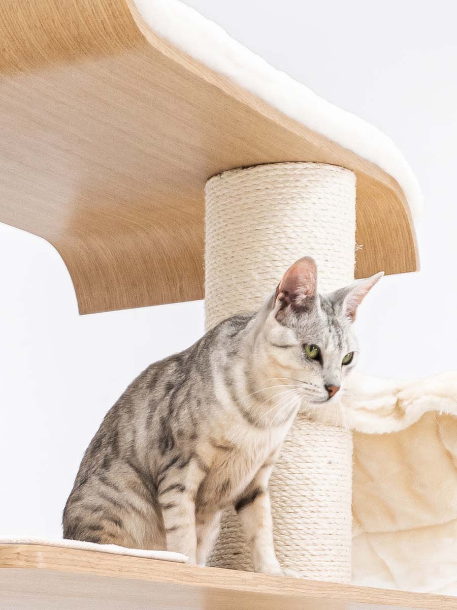The Virgo 196 is truly a super-modern scratching post that looks great in your living room. This scratching post is tall and a real eye-catcher in your home – it is beautiful, luxuriously finished and, thanks to the matching colours, it fits in with any interior. But importantly of course, this scratching post is a treat for cats. Really everything your cat Nods is on it: an XXL lounge basket on top, two soft wash-out hammocks to relax in and a nice big cat house. All with soft plush and nice thick sisal to scratch on. This is the perfect scratching post for your cat! confidence is.